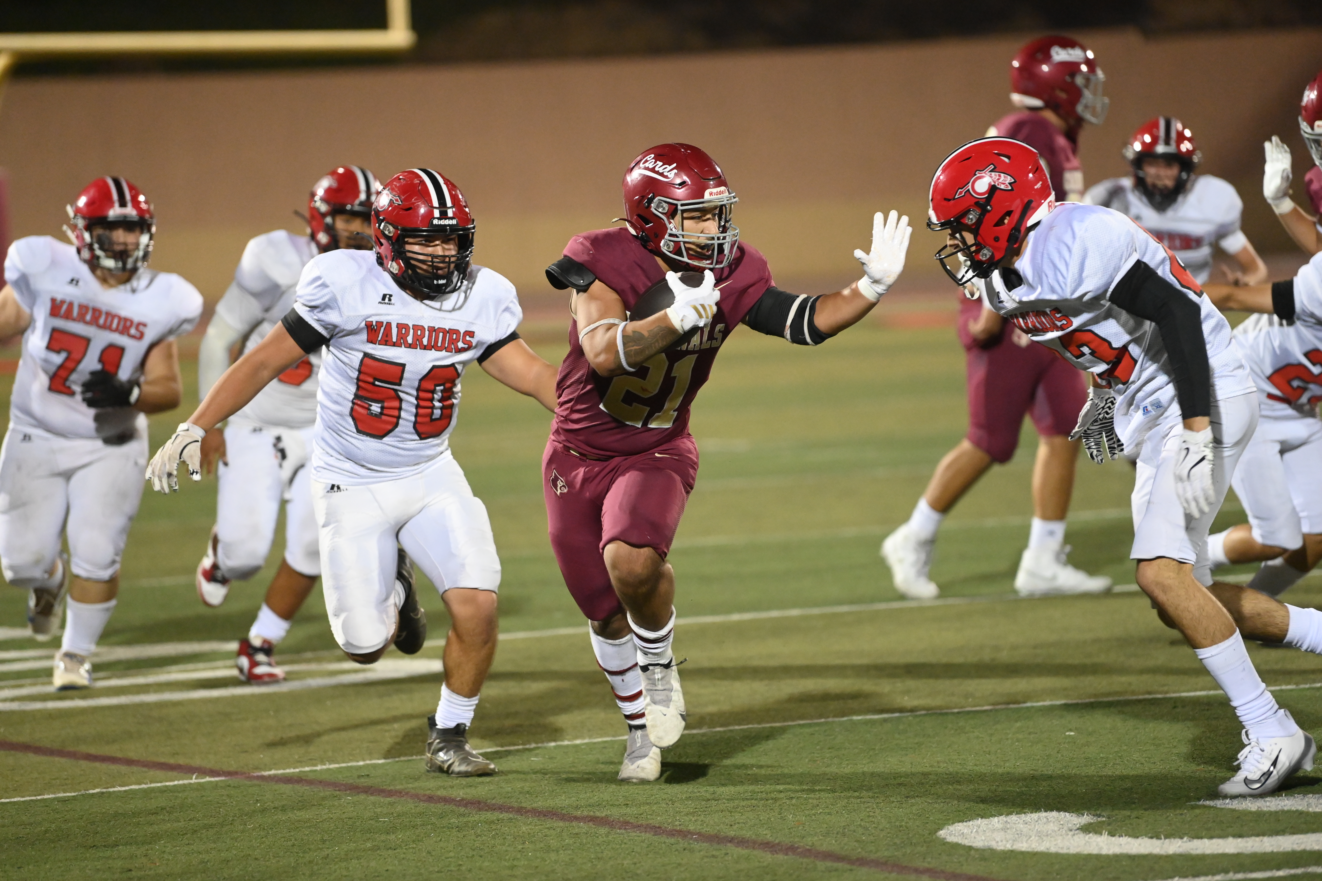 The Cardinals closed the game with 21 unanswered points after Alemany cut its deficit to 22–18 early in the third quarter. Bishop Diego will host Camarillo next week in its Marmonte League opener.