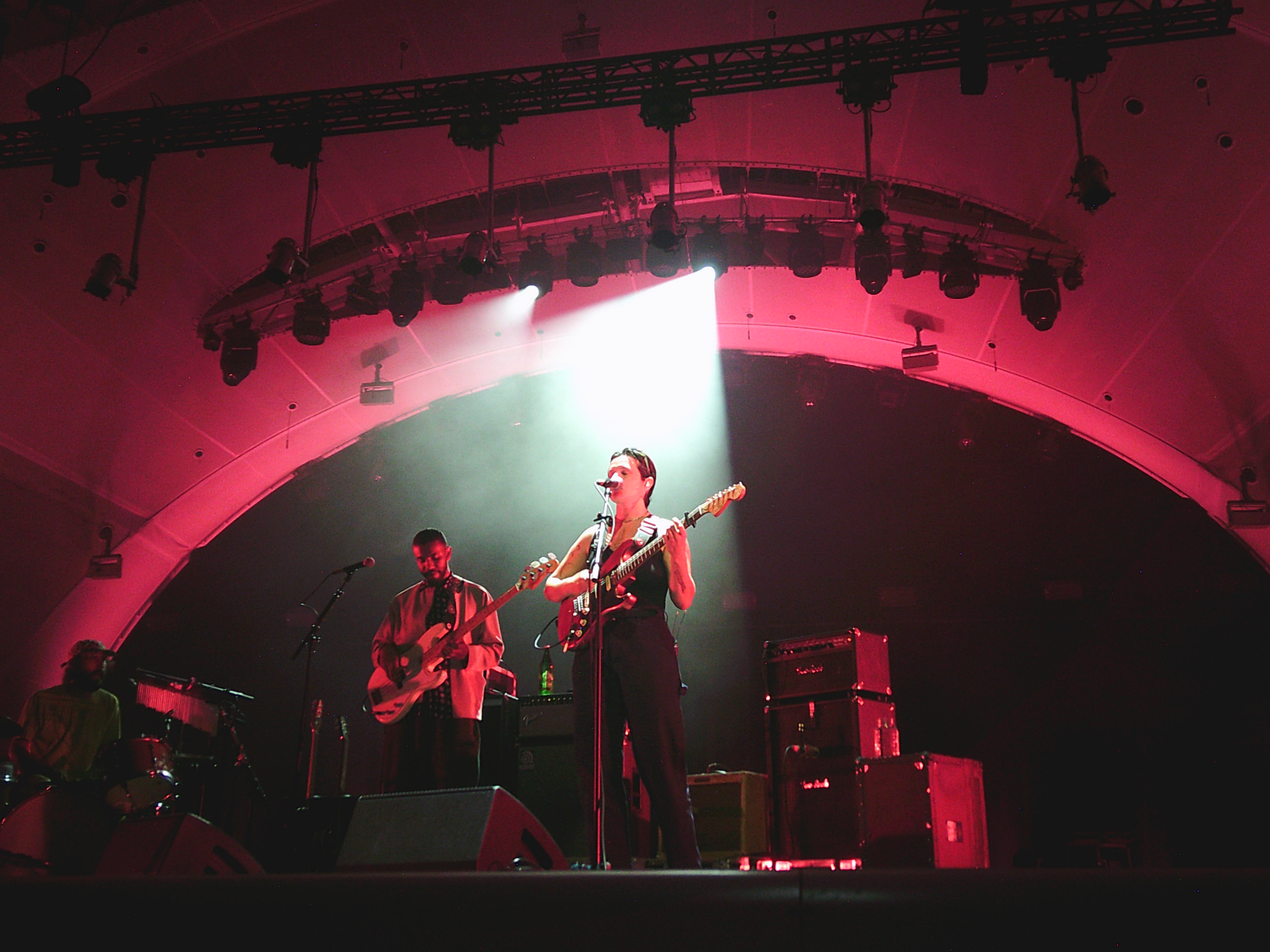 And the best show, by far, and the only show that made me buy another ticket to their next show immediately after the first one ended, was Big Thief. Headed by legendary singer-songwriter Adrianne Lenker, the indie folk band consists of Buck Meek on guitar, James Krivchenia on drums, and, on tour, Joshua Crumbly on bass guitar. Lenker’s lyrics are at once introspective, thoughtful, and full of endless curiosity. In a songwriting class I took from her, she said she’d never seen a DAW (Digital Audio Workstation, like Garageband or Pro Tools) and just knew they had an engineer, so, presumably, they record live in one take. After the show they played in London, I can see why. Somehow better than the recording by a landslide, the band (at the time including bassist Max Oleartchik) played so tightly and in sync, it felt like one person playing. I dragged my boyfriend there with me to see them the next night, and knew I had to see them again this year.