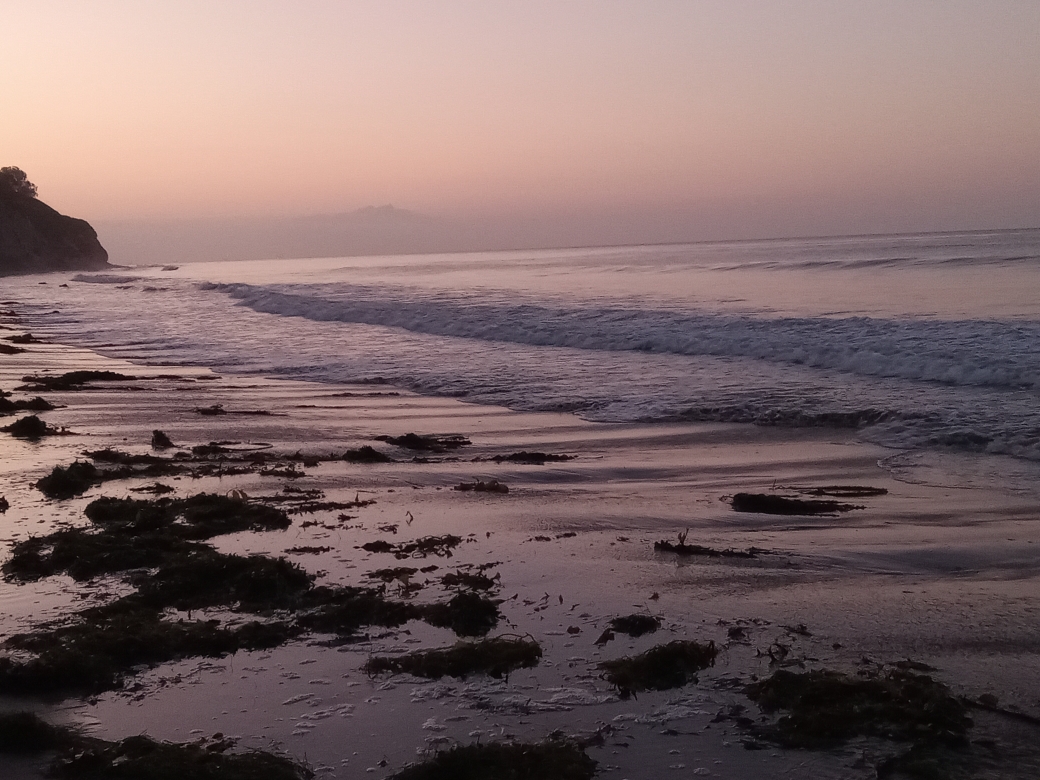 Far to my left, I saw a line of five oil platforms twinkling almost as the stars. To my right, toward Goleta, the red lights of the airport towers blinked and the massive luminescence from UCSB glowed.