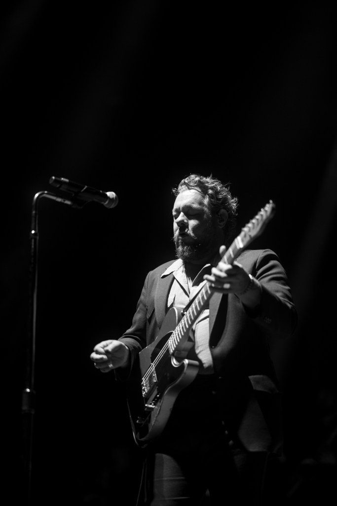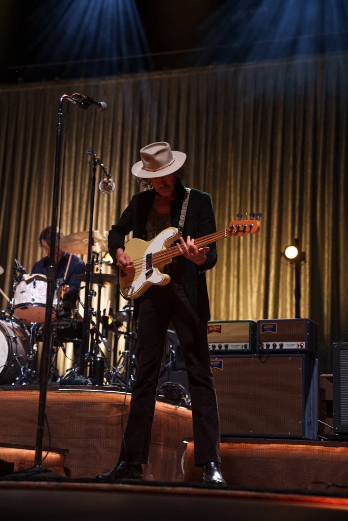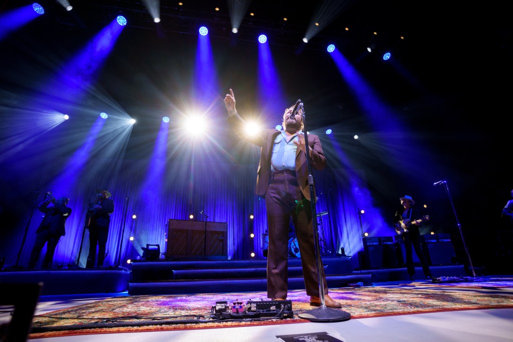Behind him, the men in dark denims: two saxophones, a trumpet, Mark Shusterman at the keys, Patrick Meese on drums, Luke Mossman on guitar, and Joseph Pope III on bass (his white fedora and ultimate groovy moviness did not go unnoticed). Once Rateliff shook a tambourine, the night tipped into full-on revival — gospel-tinged jams, sudden stops, high notes that felt like hallelujahs.