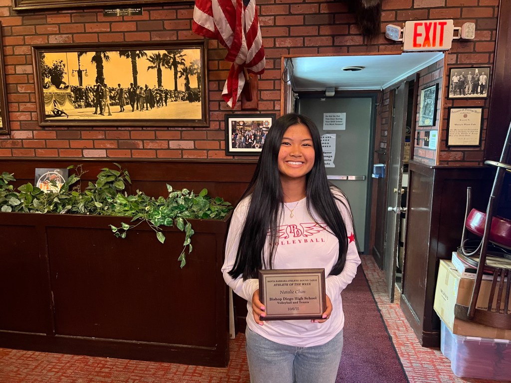Natalie Chan of the Bishop Diego girls’ volleyball and tennis teams, as well as Callan Lee of Dos Pueblos High football, took home Athlete of the Week awards for their outstanding performances over the past week.