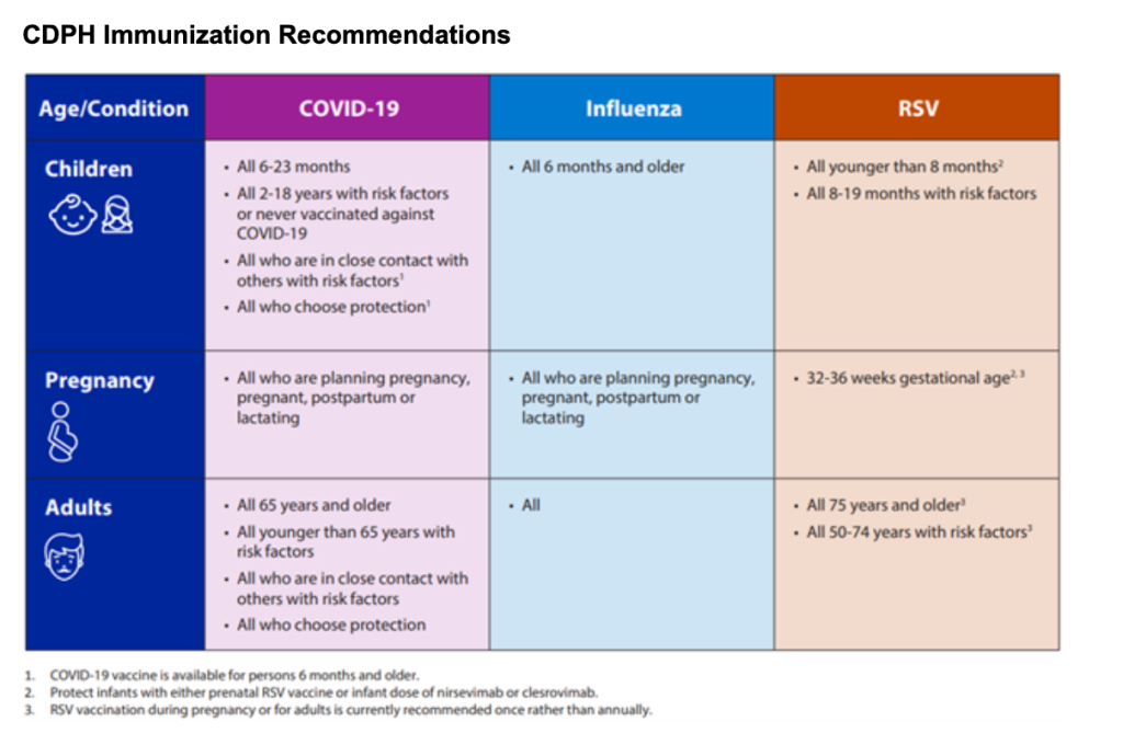 What You Need to Know: Winter respiratory virus season is coming soon, and CDPH is encouraging all Californians to protect themselves, their loved ones, and their communities by staying up to date with recommended vaccines.