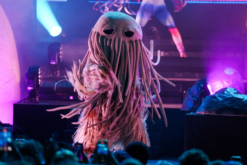 The strangest segment of the show, by far, involved a costumed side character named Suppachai. Contextual clues (as well as post-show research) told me that this was a staple of Empire’s performance as Steele “‘conversed” with the part jellyfish/part mushroom-suited dancer, the latter responding in a squabbled and unintelligible voice not unlike the adults in Charlie Brown, though decidedly forced through something like a synthesizer. As the band launched into their next song, Suppachai made the stage its playground and properly danced its ass off — assuming it had one.