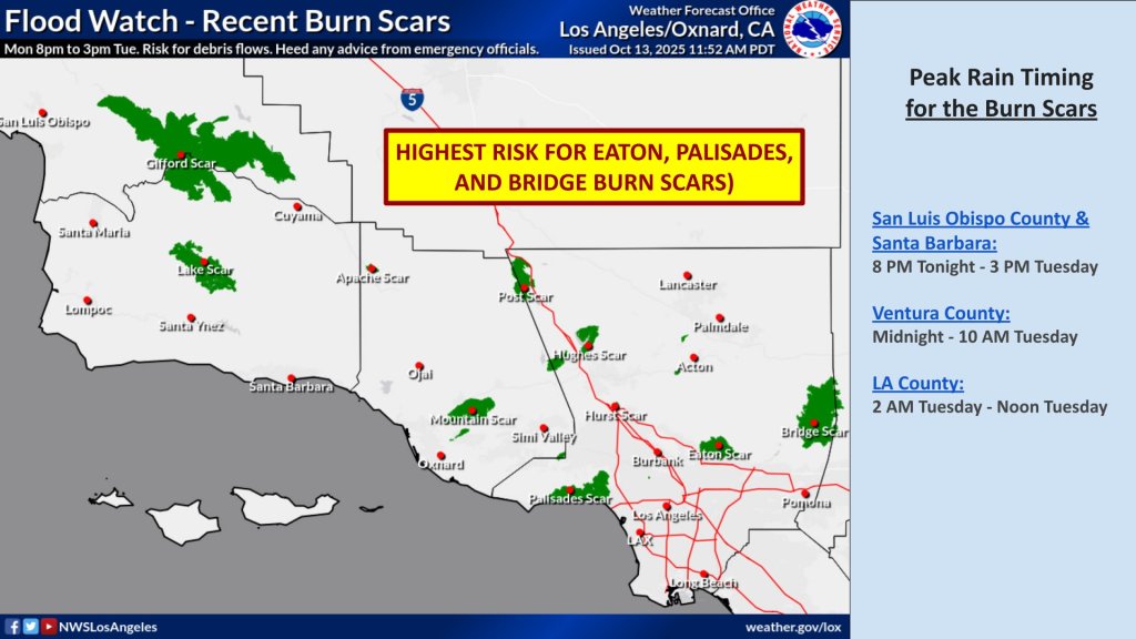 As well as being prepared to evacuate if below a burn scar, residents are advised to be ready for power outages, falling trees, and localized flooding. The storm is expected to reduce to showers by Wednesday, followed by dry, strong gusts of wind out of the northwest and northeast.