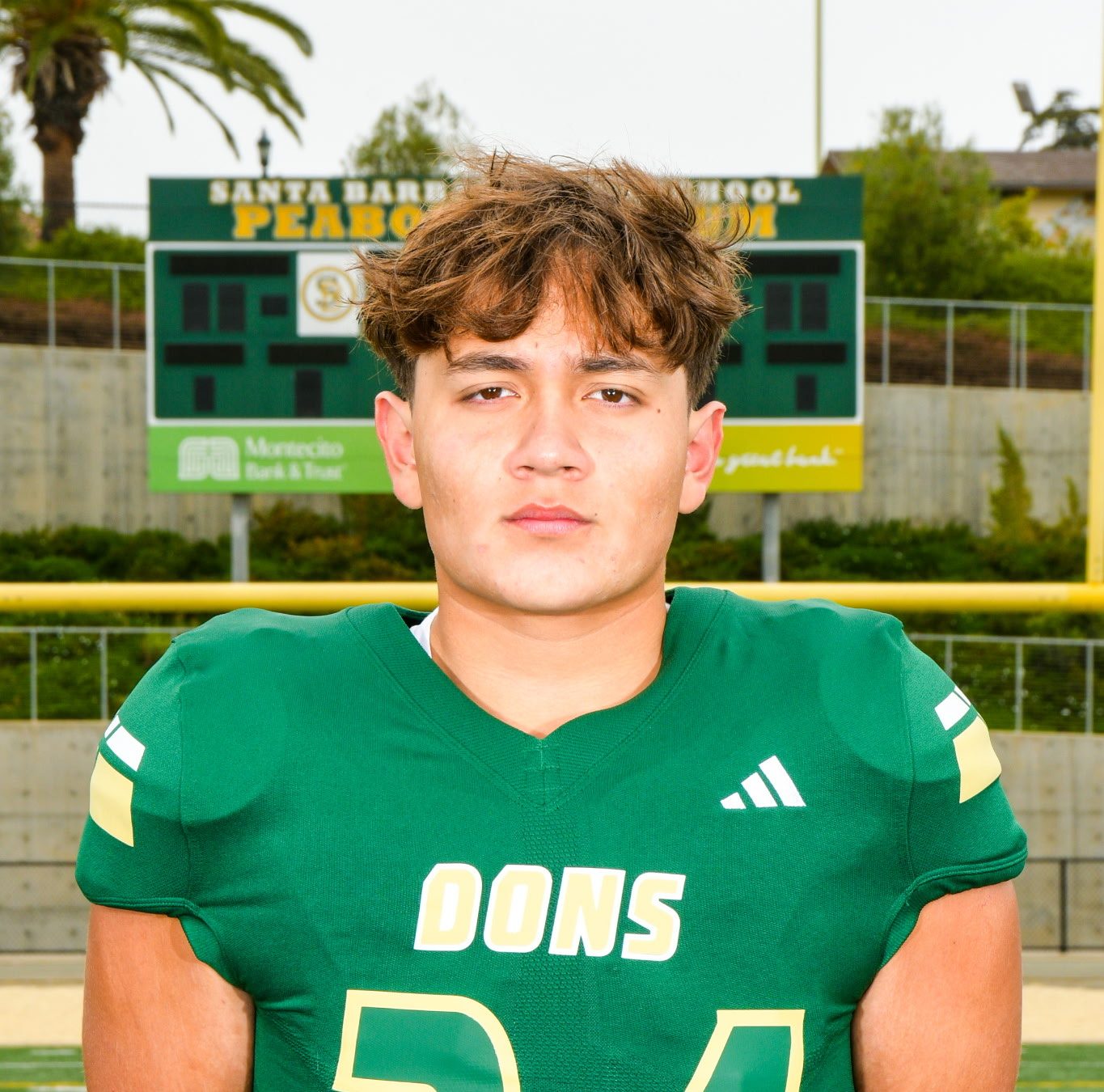 Baizan spearheaded a dominant Santa Barbara High rushing attack with 96 yards on nine carries and a touchdown. He also added six tackles, one tackle for loss, and two quarterback hurries on defense as the Dons defeated Rio Mesa 45-13.