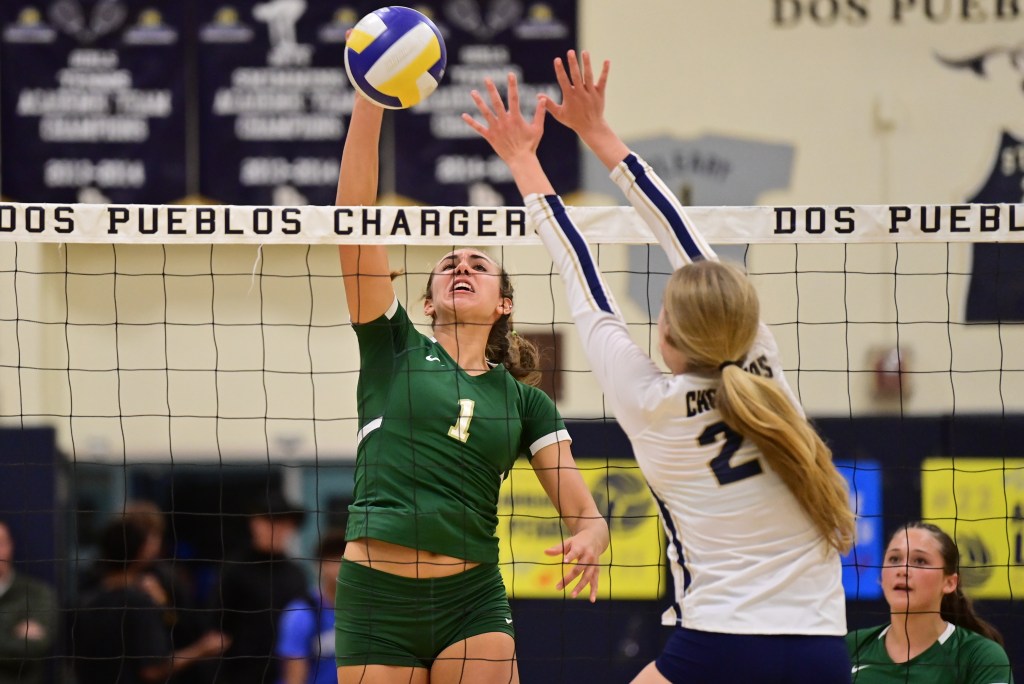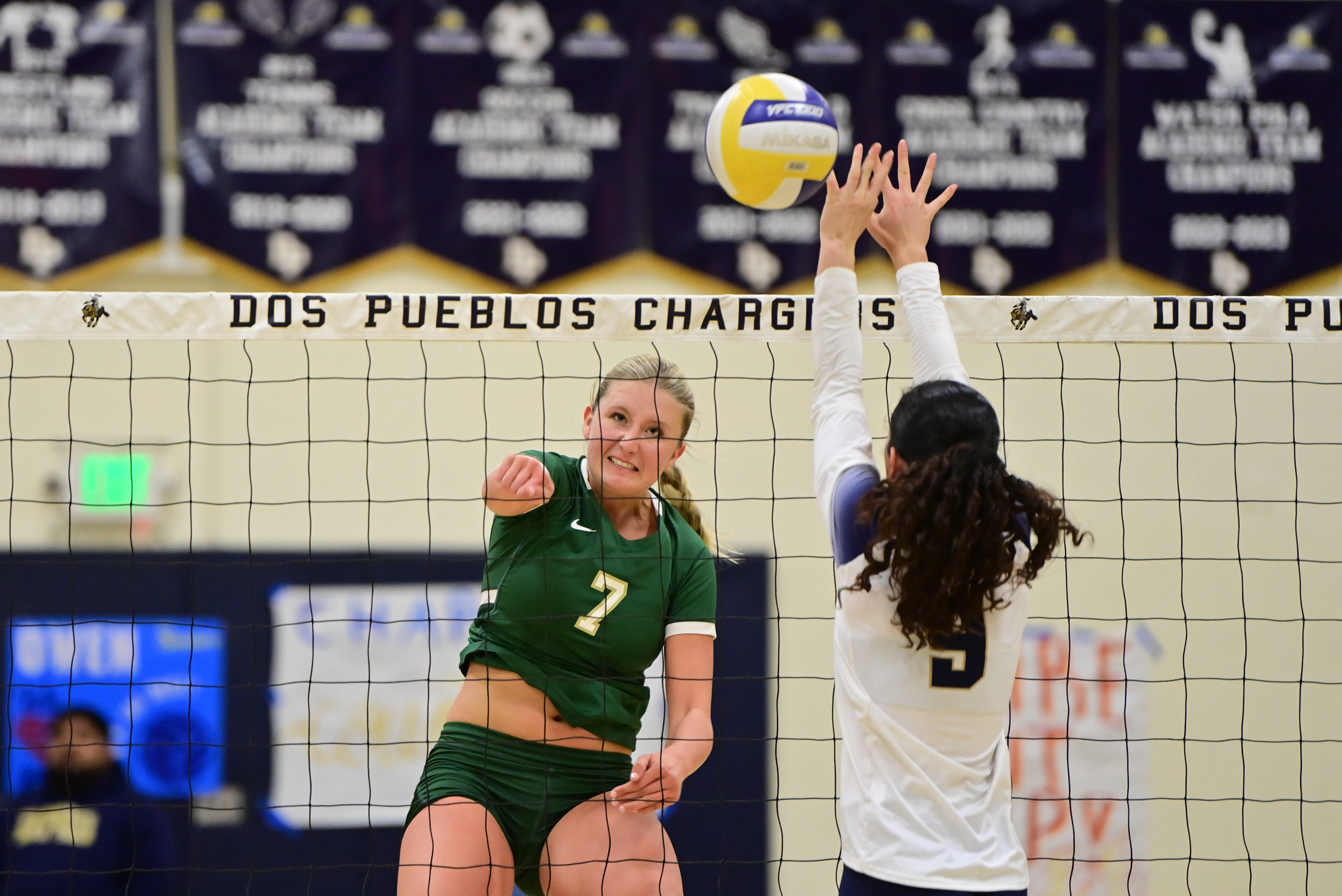 But Dos Pueblos refused to fold. Sparked by senior Addison Low, the Chargers stormed out to an 11-6 lead in the third set. Low’s big swings helped extend the margin to 22-13. A net violation gave the Chargers set point at 24-14, but Santa Barbara rallied behind another strong Marcillac serving run, pulling within 24-20 before a combined block from Maya Rider and Maggie Squires sealed the set for Dos Pueblos.