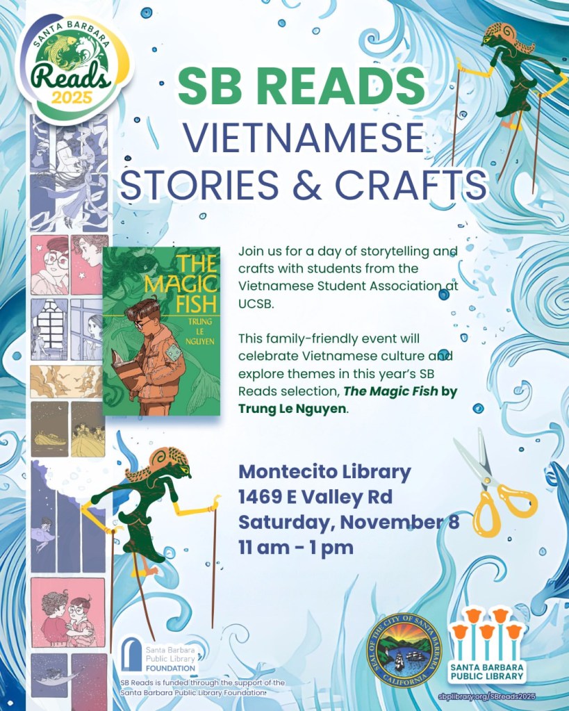 But that’s just the first of many creative, hands-on workshops planned throughout the monthlong program — including a partnership with UCSB’s Vietnamese Student Association at the Montecito Library, an open-mic storytelling night at the Central Library, and a family event at the Eastside branch.