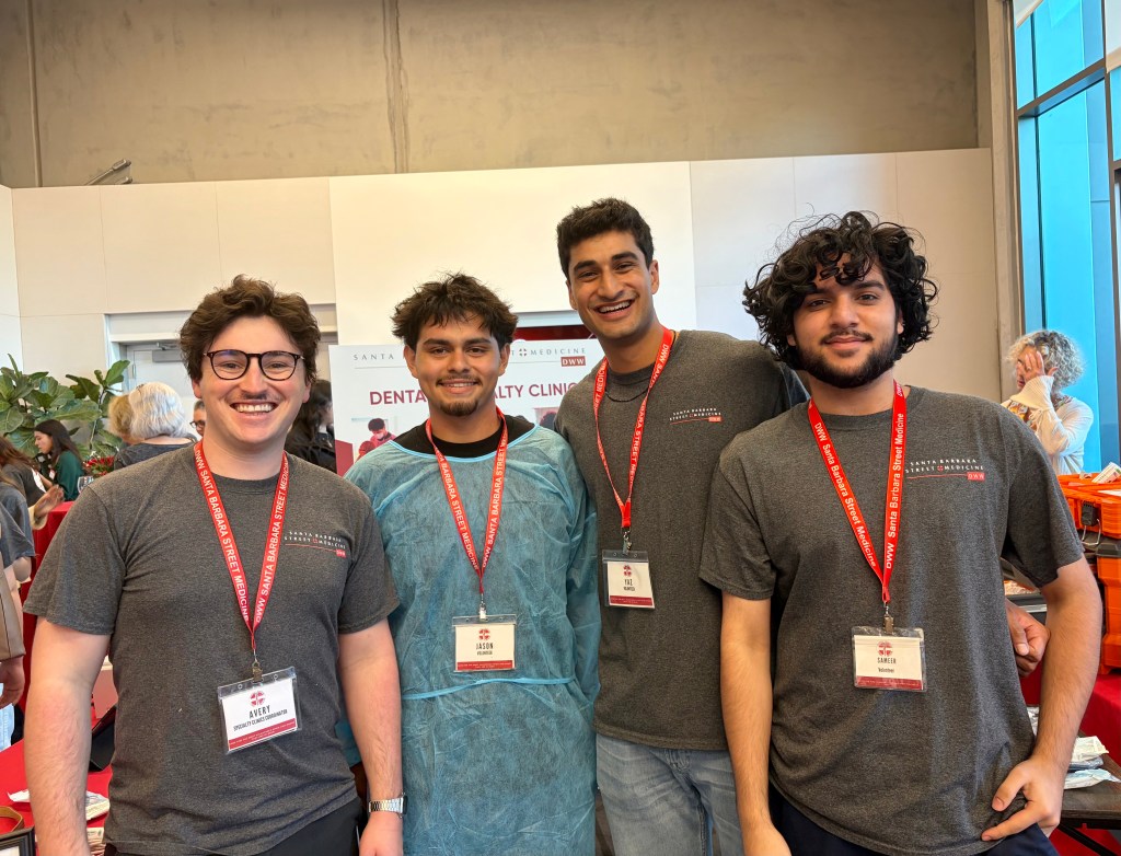Volunteer Specialty Clinics Coordinator Avery Zinner with volunteer dental assistants Jason Mejia, Yaz Shah, and Sameer Faizyar | Gail Arnold