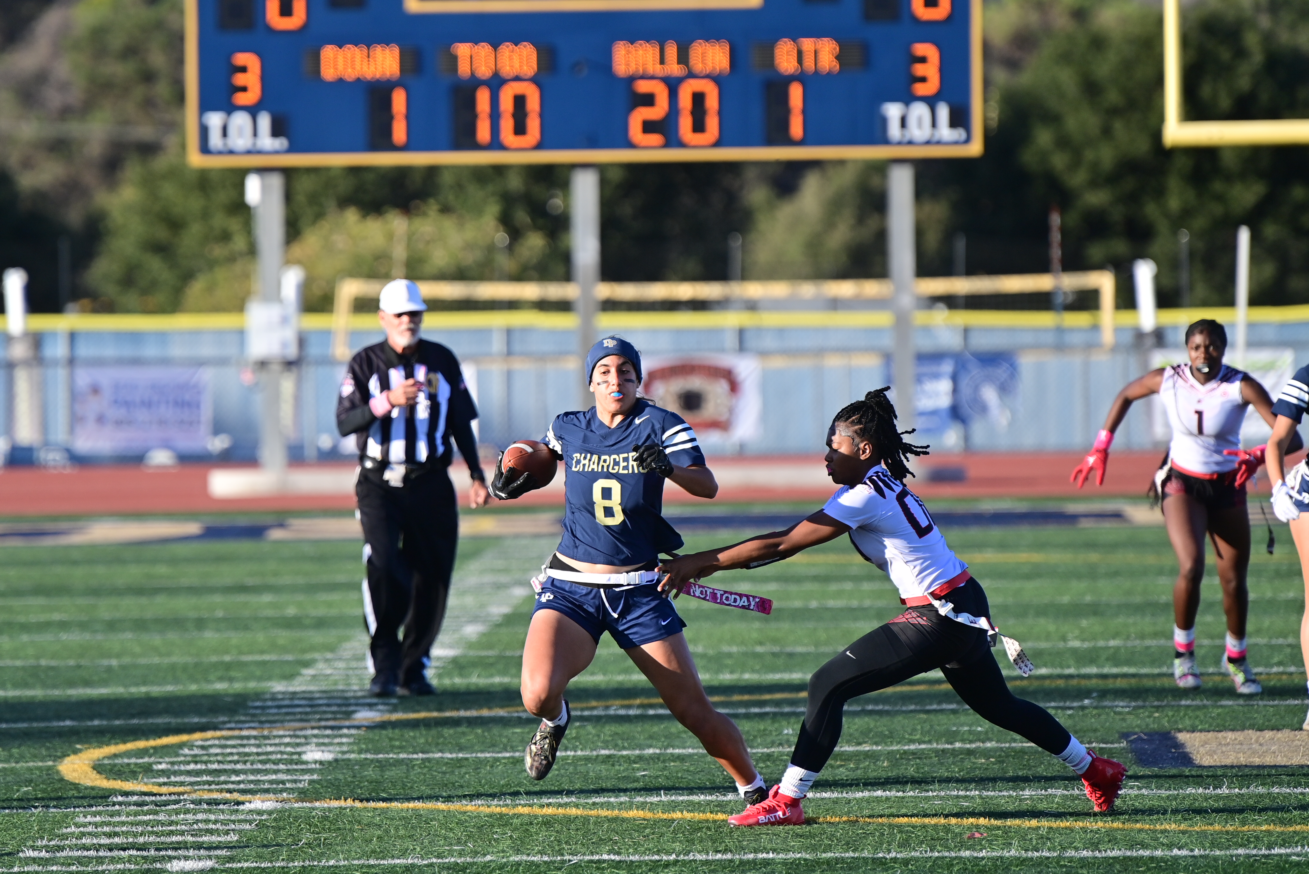 Midway through the second quarter, an interception by Etiwanda’s Mykayla Weathersby was returned to the Dos Pueblos 11-yard line. However, the Chargers’ defense held firm and forced a turnover on downs to preserve their 6-0 lead.