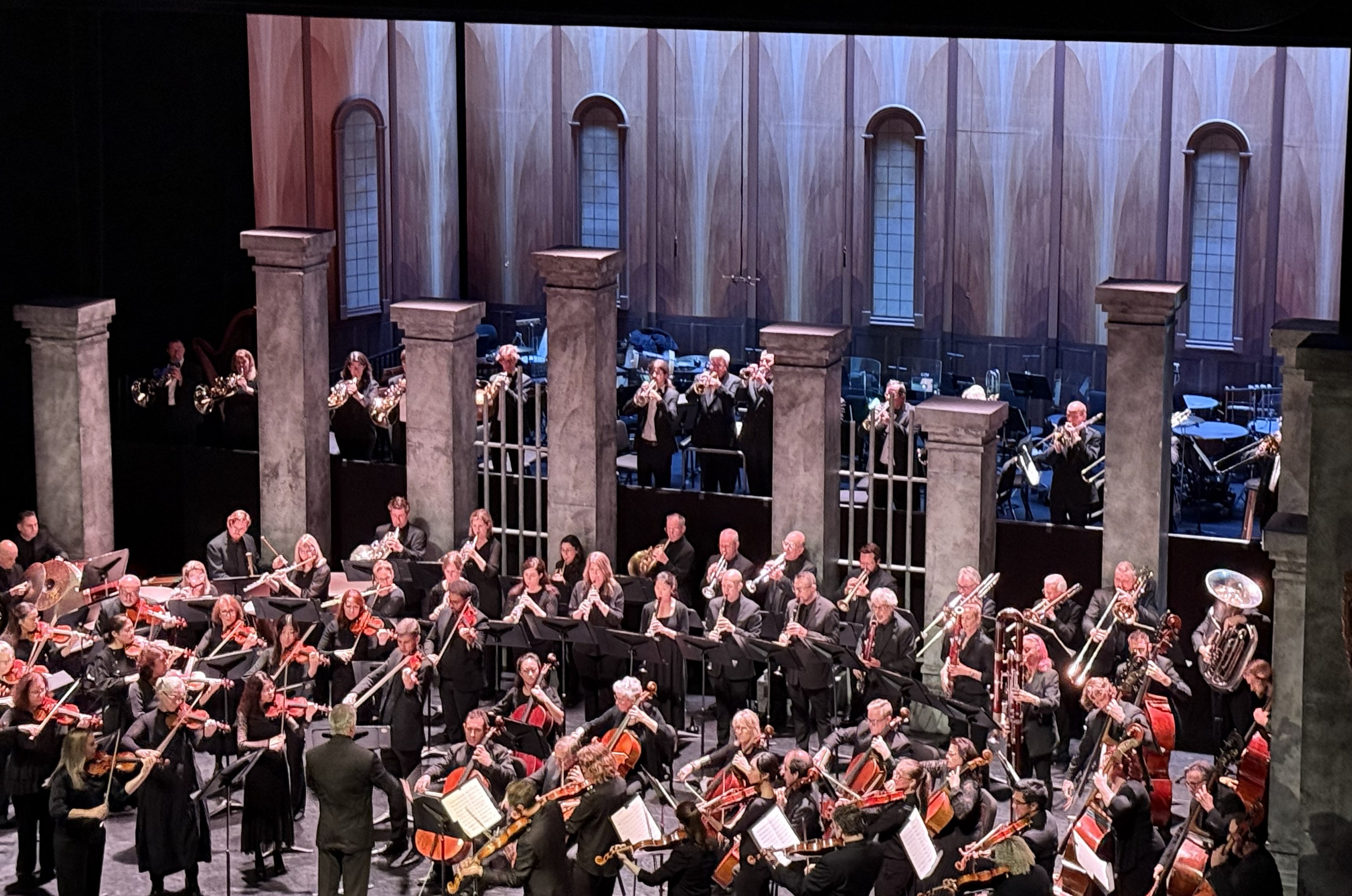 After a break, the curtains opened on the full stage set for the ballet (borrowed from the Minneapolis Ballet), to dramatic effect, and now with the orchestra perched above the stage, versus the traditional orchestra pit placement.