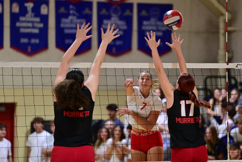 Set Two was tight throughout, as back-to-back aces by Murrieta Valley’s Summer Tukua trimmed the San Marcos lead to 9-8. The Nighthawks took a 15-14 lead on a team block. With the set tied at 23 apiece, Reese Paskins—who took on an increased role with Gracie Stone sidelined by injury—cleaned up a Murrieta Valley overpass to give the Royals a 24-23 lead.