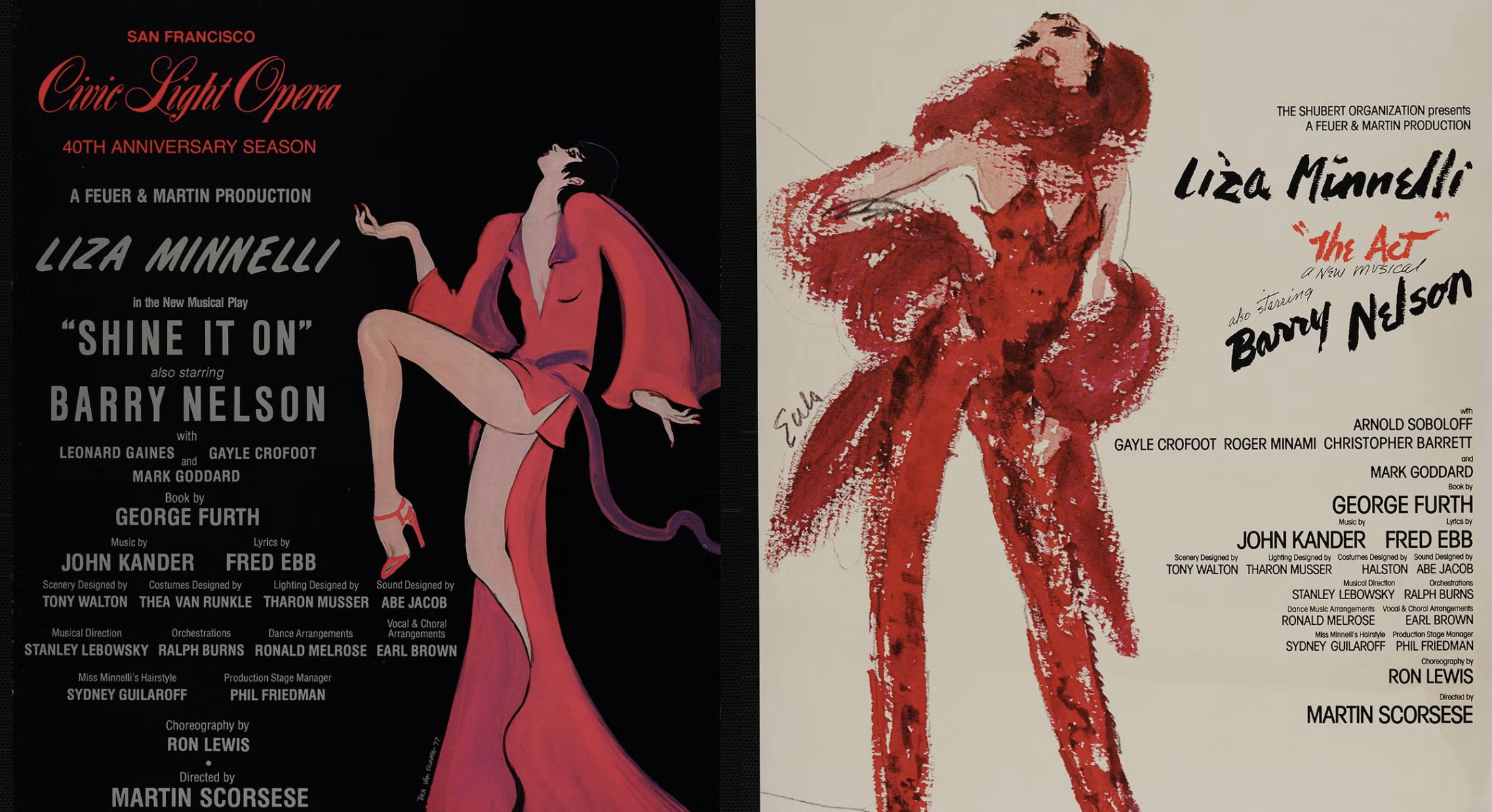 Similarly, the exhibit features a poster for a 1970s Liza Minnelli vehicle originally titled “Shine It On” when it played in San Francisco. By the time it came to New York, it had a new, much bolder poster, and a new name, “The Act.” Historical footnote: The director is listed as Martin Scorsese, which leads one to wonder what a Martin Scorsese musical might have looked like.