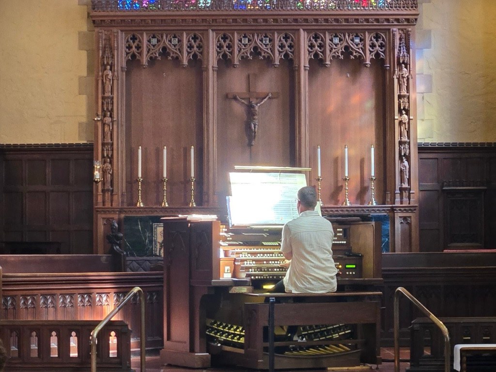 He closed with the delicious and orderly — and tonality-stretching — thicket of Bach’s Fantasia and Fugue in G minor. Like the opening “Batlas de Sexto Tono,” by an anonymous Spanish composer, Bach’s music shows off this organ’s antiphonal trumpet-like pipes, which Joyce calls “the spice rack” — at the rear of the church. Both organ and organist both shined on this lunchtime musical feast.