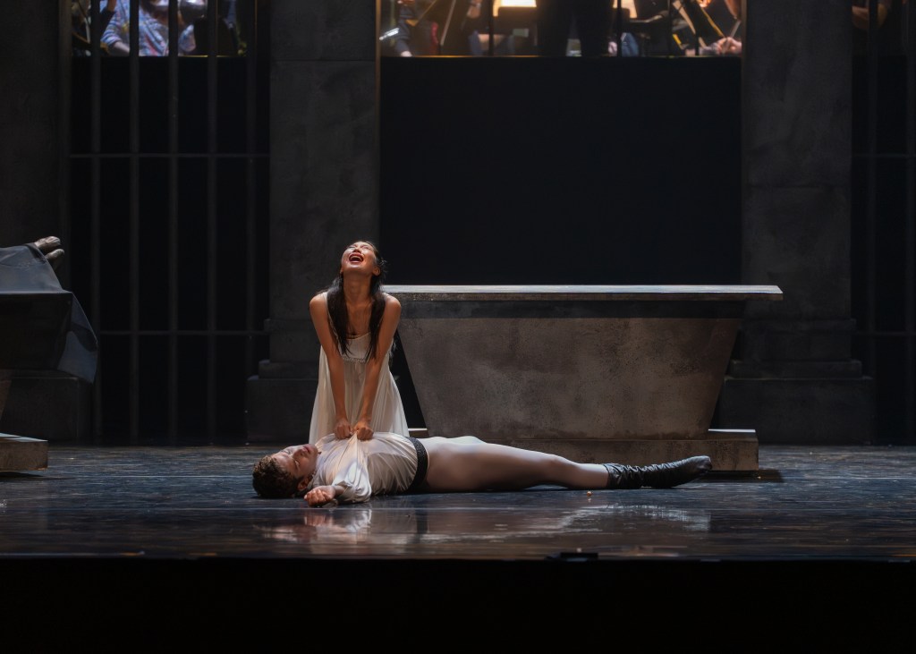 The next morning when Juliet is to wed Paris, a lovely group of young girls with lilies dance in her bedroom, before anyone suspects that she may be dead. This elegant dance, choreographed by MacDougall, was performed by the State Street Ballet Young Dancers, trainees of the main company. MacDougall emphasized the importance of giving these pre-professional dancers the opportunity to be integrated into a full production, providing “an essential bridge between learning and artistry.” MacDougall explained that she sought to express the emotional complexity of Prokofiev’s music, portraying a “nuanced reflection of innocence, familial expectation, and the inevitable pull of passion that defines Juliet’s evolution.”