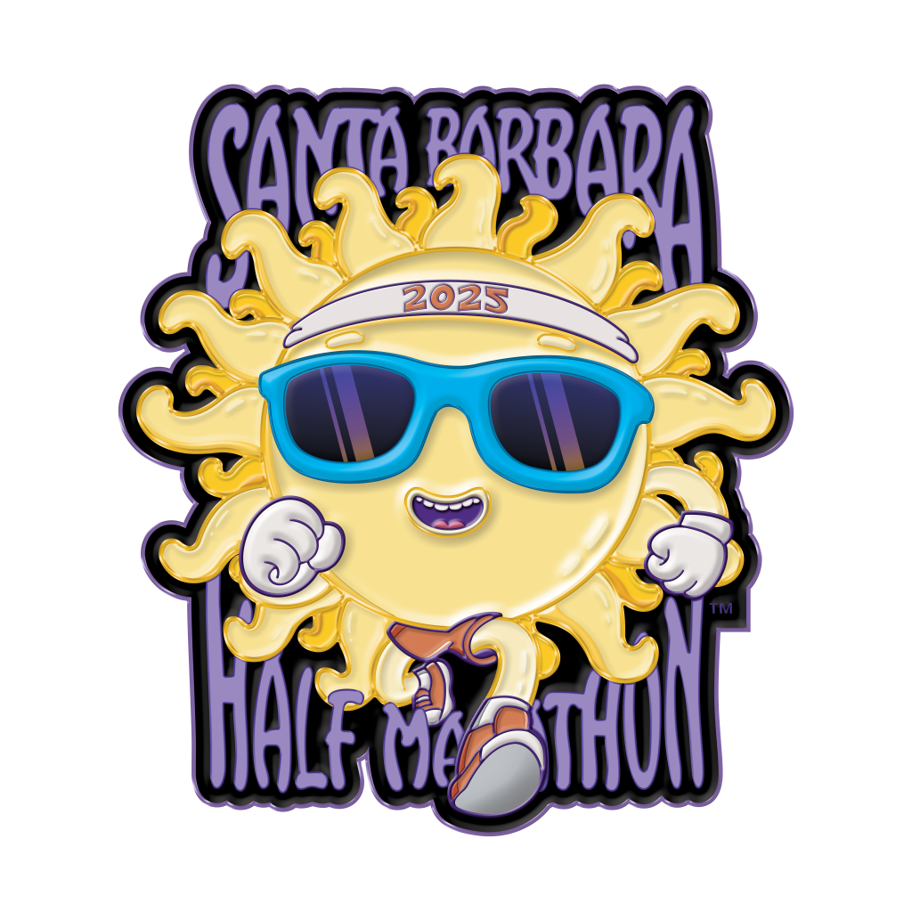 Here comes the sun … on a T-shirt — and he’s running! Sol himself is the centerpiece of the artwork for this year’s Santa Barbara Half-Marathon, coming November 9 to Santa Barbara’s main streets. To inspire runners and help promote the many parts of the event (including public events on November 7, 8, and 9), race organizers annually call on a local artist to create work that is used on T-shirts, posters, and the much-coveted finisher’s medal — available only to the people who complete the grueling 13.1-mile trek.