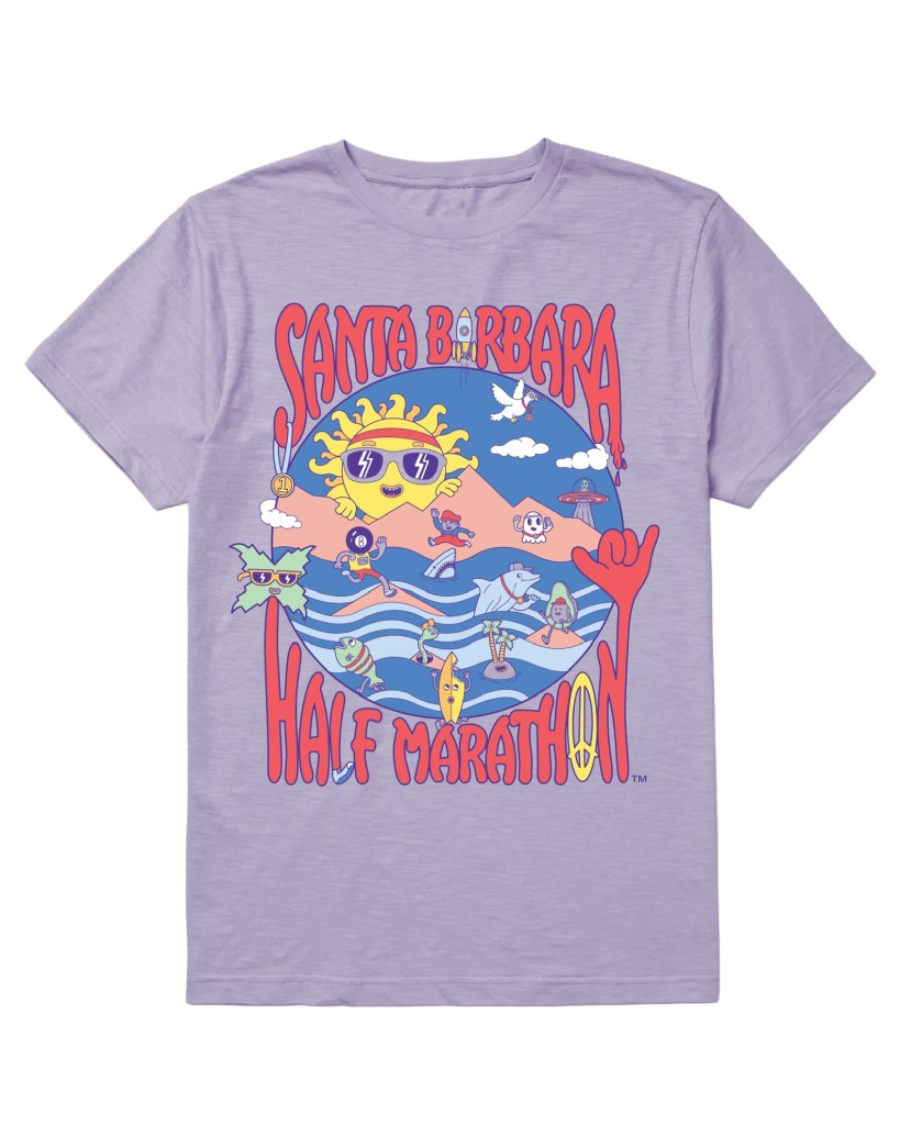 Inspired by Sulzberg’s art, race organizers also created a 3D version, a costumed mascot that will surely be part of hundreds of post-race selfies. Sulzberg also notes that the artwork will appear on various merchandise that runners, friends, and fans alike can buy at S.B. Half-Marathon events. Look for T-shirts, hats, sticker packs, and more.