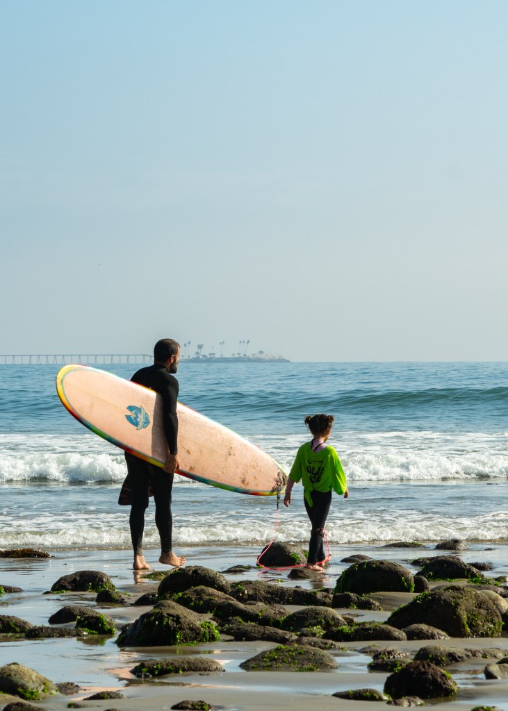Reina shared waves with her dad, Jeremy “Turtle” Castillo, who pushed her into sets and cheered from the lineup. “She took a couple on the head. Youngest contestant,” said Turtle, grinning as Reina darted across the sand post-heat. “Started surfing at 9 months old at the nose of my board.”