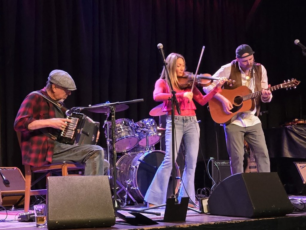 Jenkins, guitarist-singer-mandolinist with youthful roots at Jensen’s, was emcee for the event, announcing upfront that it would be “a Grand Ole Opry–style show, with tunes and some talking, with a restaurant attached.” He also reminded folks that a collection was being taken up for the Jensen’s retirement fund GoFundMe campaign (link here).