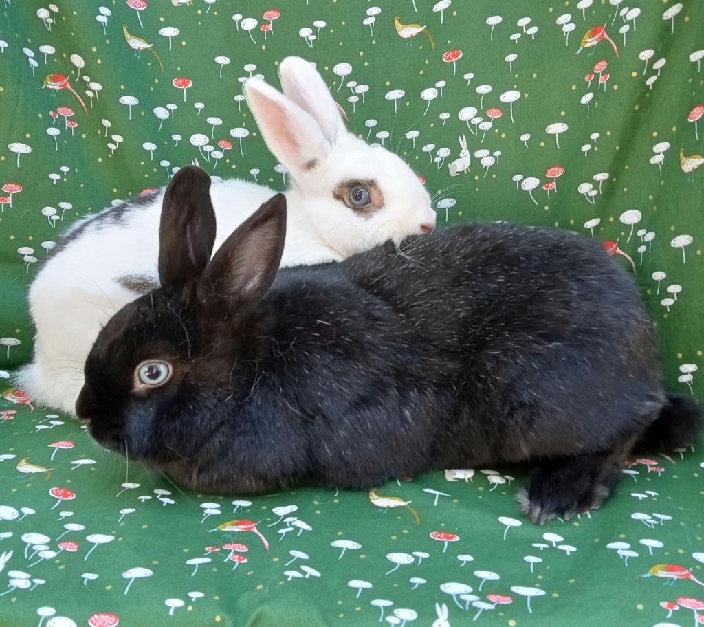 These two bunnies are as sweet-tempered and easy-going as they are lovely to look at. Smokey is the female and the rarest of rare bunnies with her black fur and luminous blue eyes. Her beloved bondmate, Sky, is male and also has blue eyes. They are a prize pair for sure as they are easy to handle, have good litter habits, and are so ready to bond with their new adoptive family.