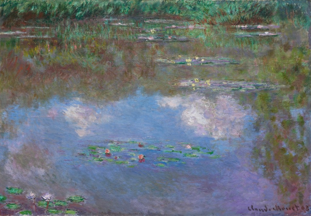 Going deep into his reputation as a kingpin and early architect of the movement, the show boasts a pair of canvases from his storied water lily series — two out of some 250 paintings he made in his own private backyard. We see his progression by comparing 1903’s “The Water Lily Pond (Clouds),” still giving us a sense of bearings with a horizon line on top and a clear depiction of said clouds in the watery mirror, and, five years later, his more immersive and flotational-feeling “Water Lilies” from 1908.