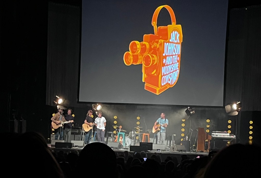 It’s hard to feel anything but good vibes when Jack Johnson’s in the house. Such was the case on Thursday, November 6 at his much-anticipated and quickly sold-out show at the Arlington (see story here). It was a long, laid-back evening with a packed house that felt more like hanging out with friends than a rock concert — exactly as Jack and his crew of musician, surfer, filmmaker friends, who call themselves The Moonshine Conspiracy, intended.