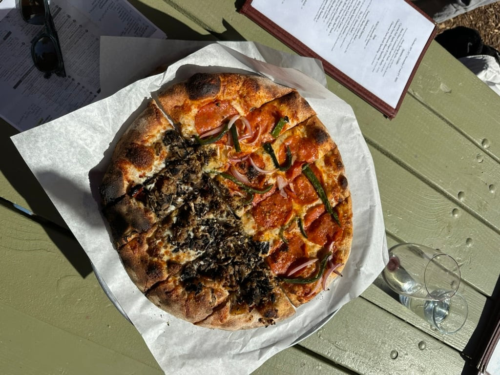 So when my good friend Peter Work of Ampelos Cellars — who I made my own Periodista wine with from 2012 to 2019 — said he had some Baja winemaker friends coming to town, I was there. That we’d be eating Saturday lunch at Full of Life Flatbread in Los Alamos was just the melty cheese on the pie.