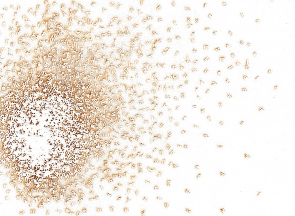 Djouini’s interdisciplinary practice bridges printmaking, typography and sound with computational linguistics and digital technologies. Through her use of typography as both image and concept, she examines how letterforms themselves travel and mutate — how they carry traces of colonial histories, migrations and hybrid identities. Her work often incorporates multilingual systems to visualize the linguistic entanglements of the region and its diaspora.