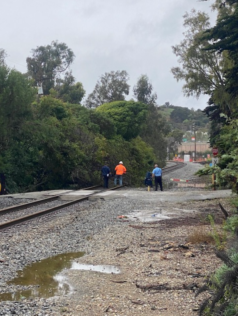 As of Sunday morning, no serious injuries had been reported, but tree damage and car accidents were seen throughout the county. One large tree fell across a set of railroad tracks in Summerland, forcing an Amtrak passenger train to stall on the tracks while workers cut and removed the tree on Sunday.