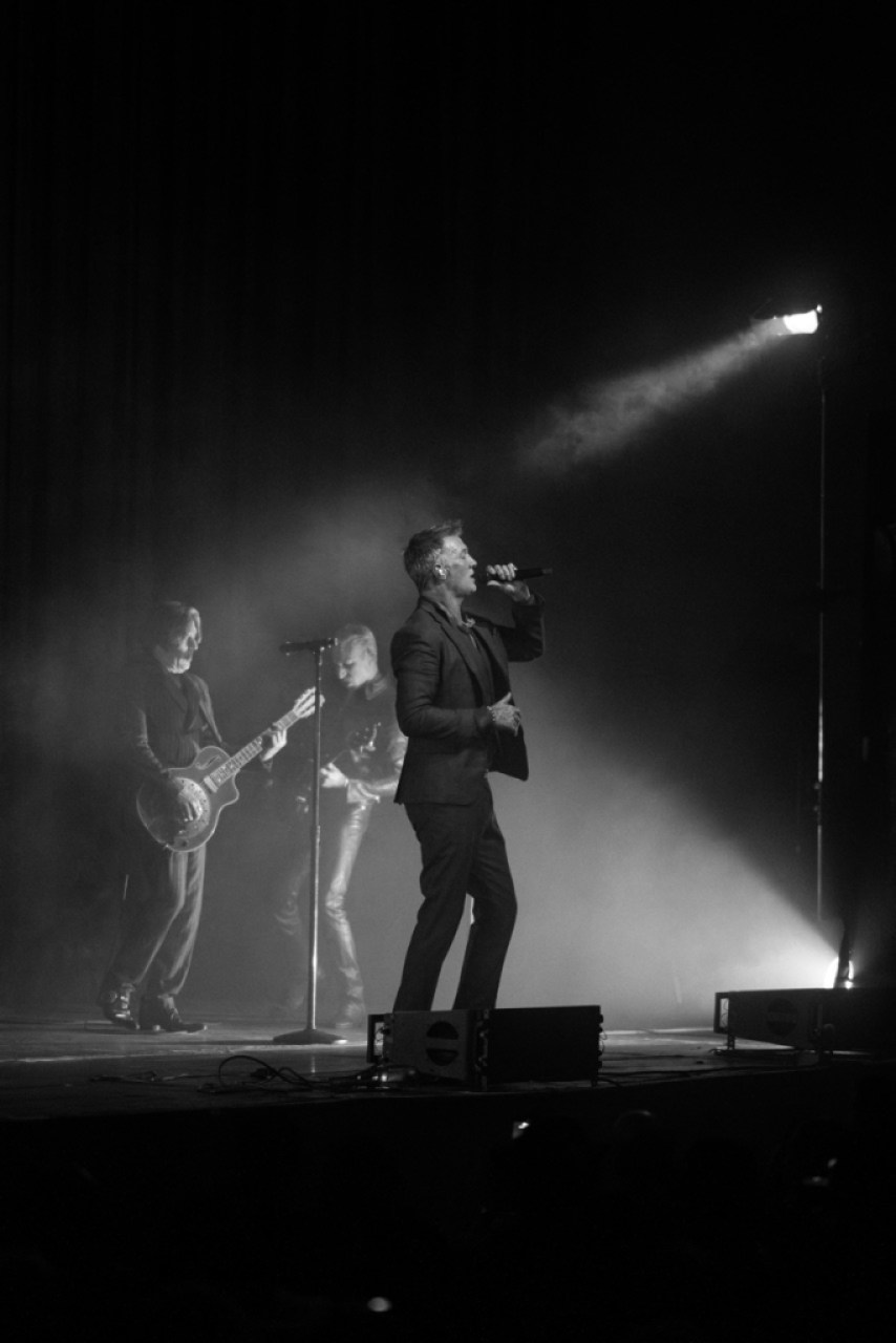 His audience-interruptus antics continued. When an excited fan held out his hand for a shake, Homme instead knocked him upside the head, and vigorously grabbed him by the hair and gave a different kind of shake. Was Homme making a statement about the downsides of phone-ready and overly friendly modern concertgoers? No, he was playing a role suited to this unique, chamber-esque QOTSA on this limited Catacombs Tour, the role of a snarky, dusky crooner in a black suit, flown in from the Brecht/Weill demimonde model.