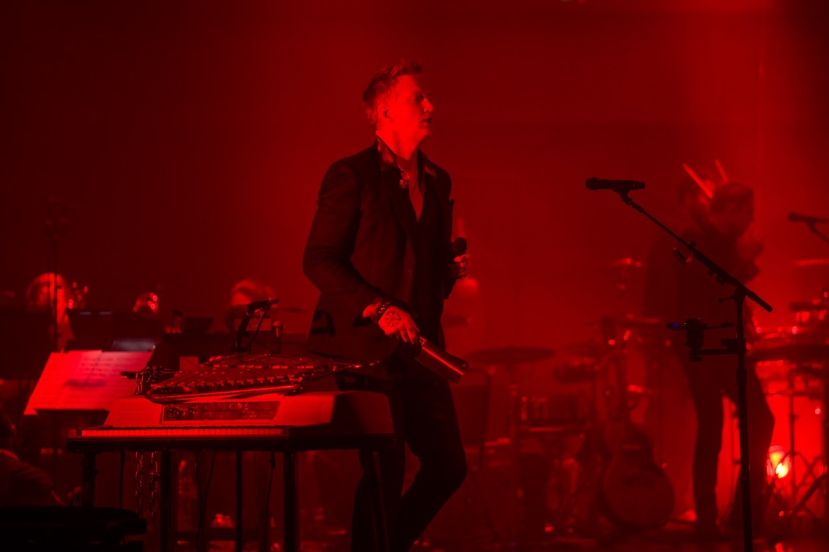 In a program broken up into three acts, the conceptual concert opened in chamber rock fashion, with newly arranged versions of songs featuring a string quartet, subtle keyboards, and spare percussion versus a standard bashing drum kit effect. A dim-lit, dark horse cabaret atmosphere prevailed in the house, with Homme introducing the evening by slinking down the aisle while easing into a medley of “Running Joke” and “Paper Machete.” He took on the persona of a Weill-ish, Weimar Republic–an character, or something out of Sondheim’s Sweeney Todd, even wielding a menacing meat cleaver as a prop. Yes, he was the demon troubadour of State Street.