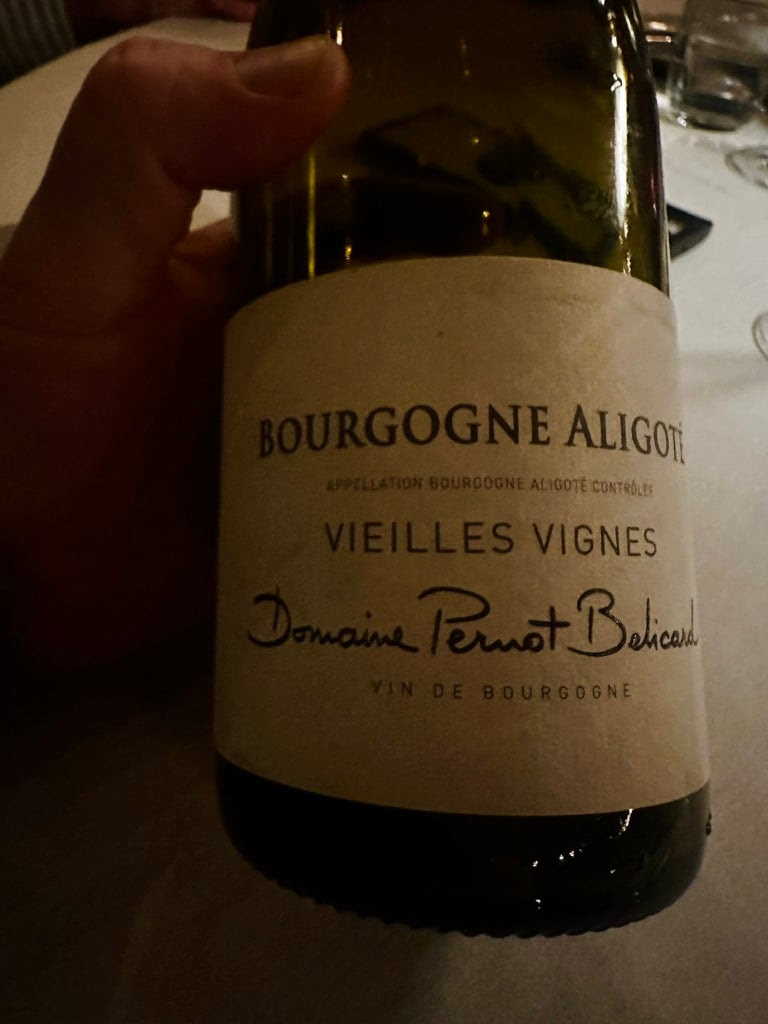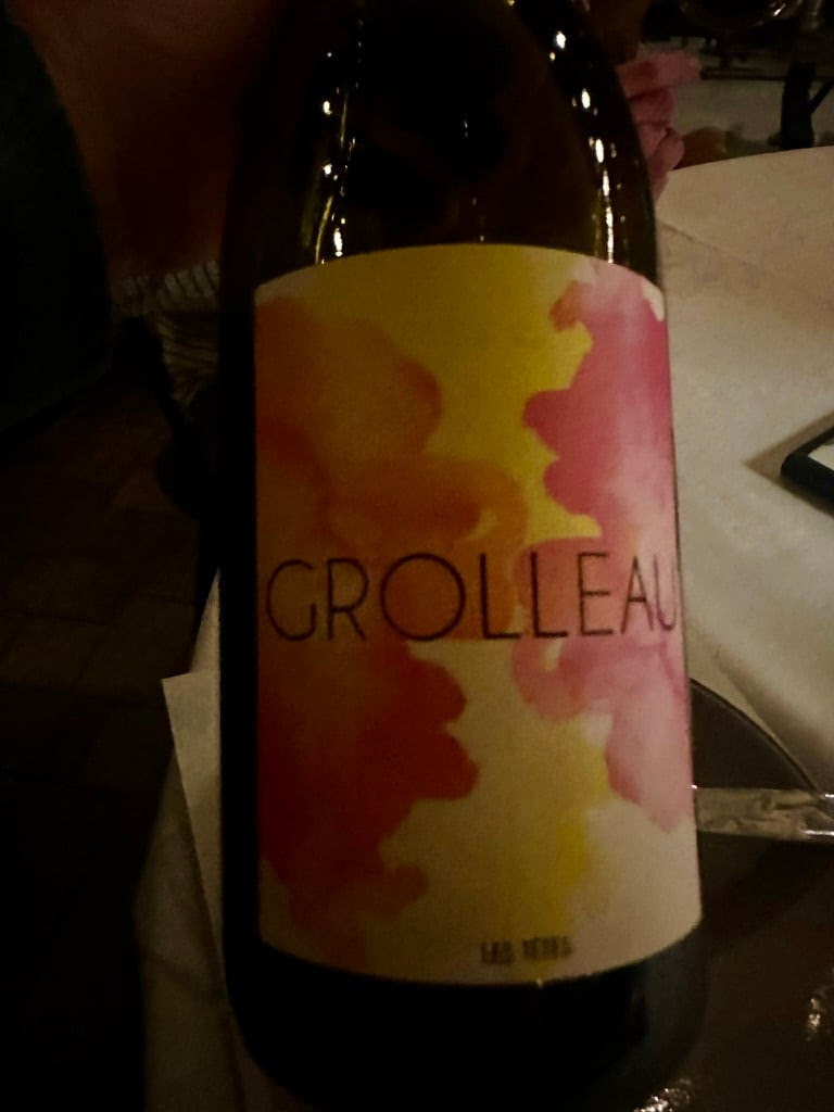 The five-course dinner was storybook as usual, from the urchin-caviar crepe and cauliflower soup to the chicken pithivier and scallops in potage to the cavatelli en bouillon and steak au poivre. We tried all three desserts and did agree with our server that the floating fig island creation was best. Serving as refreshments were bottles of aligoté and grolleau from France. Daisy even came by to say hello.