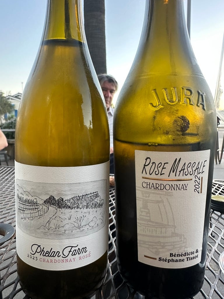 Once seated on the sunny patio, out came German chasselas and chardonnay and pink chardonnays from both the mutated grape variety’s original vineyard in the Jura and Raj Parr’s Phelan Farm up the coast in San Simeon. There were also reds, but at no point did Mike or Tomas try to serve any of their own wine to us. This was strictly a friendly affair, everyone talking wine and life like the old friends that most of us are.
