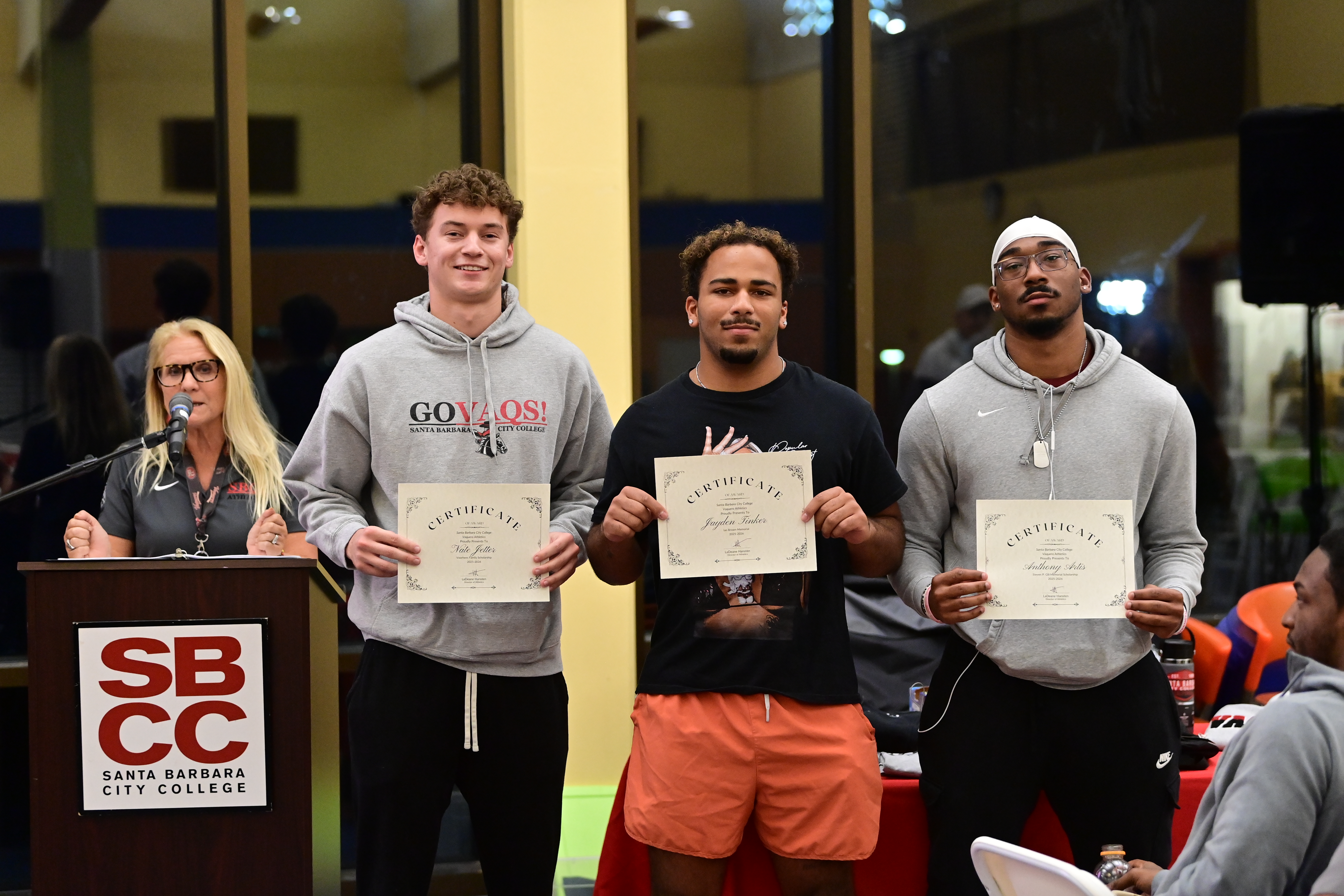 In addition, three SBCC football players received merit scholarships to continue their education at four-year universities.