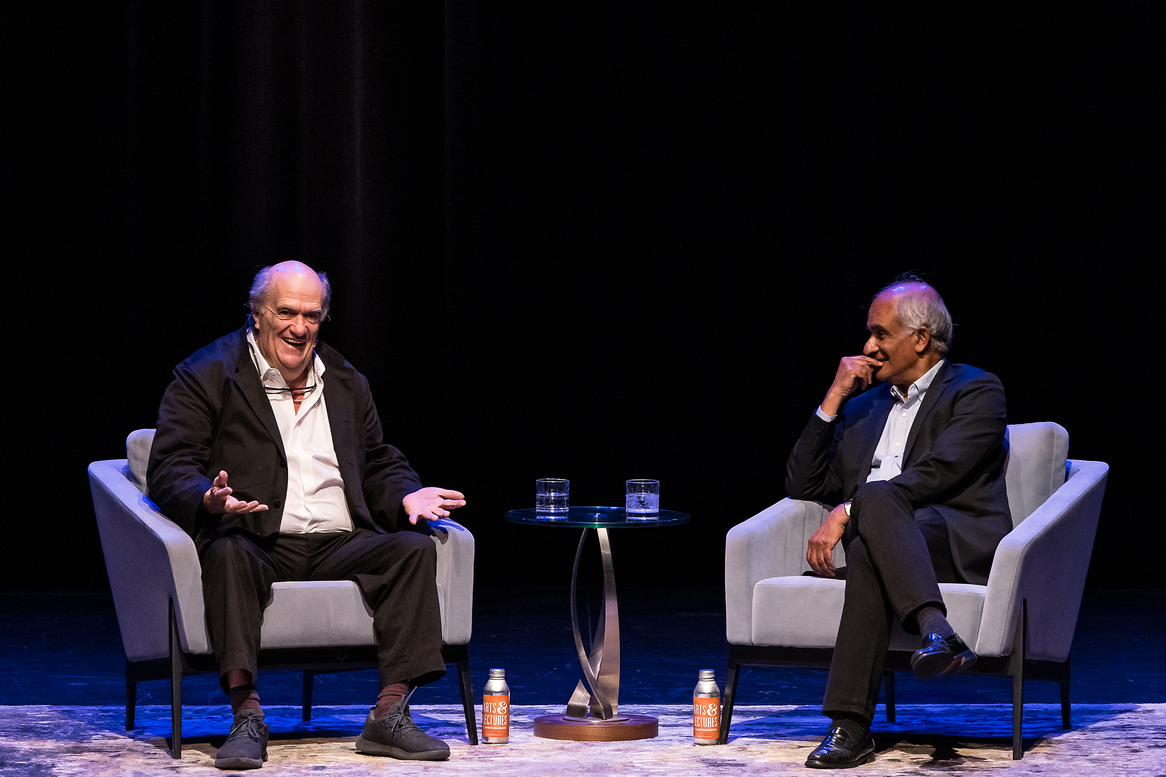 “It’s always on my mind, the things that happen and the things that remain unresolved,” Tóibín replied to Iyer’s question asking whether it was difficult writing about his hometown. “Leaving your own country, Ireland, to go to England or America, and what sort of life you live … That remains a great unresolved story.” He went on to talk about the emotional dissonance of those who have moved away returning home after years abroad, saying, “You think you’re going home, but actually you’re somehow a ghost in your own hometown, with your different accent, your different experience, with your different response to money. People think you’re glamorous. These things are still oppressing the emotions.”