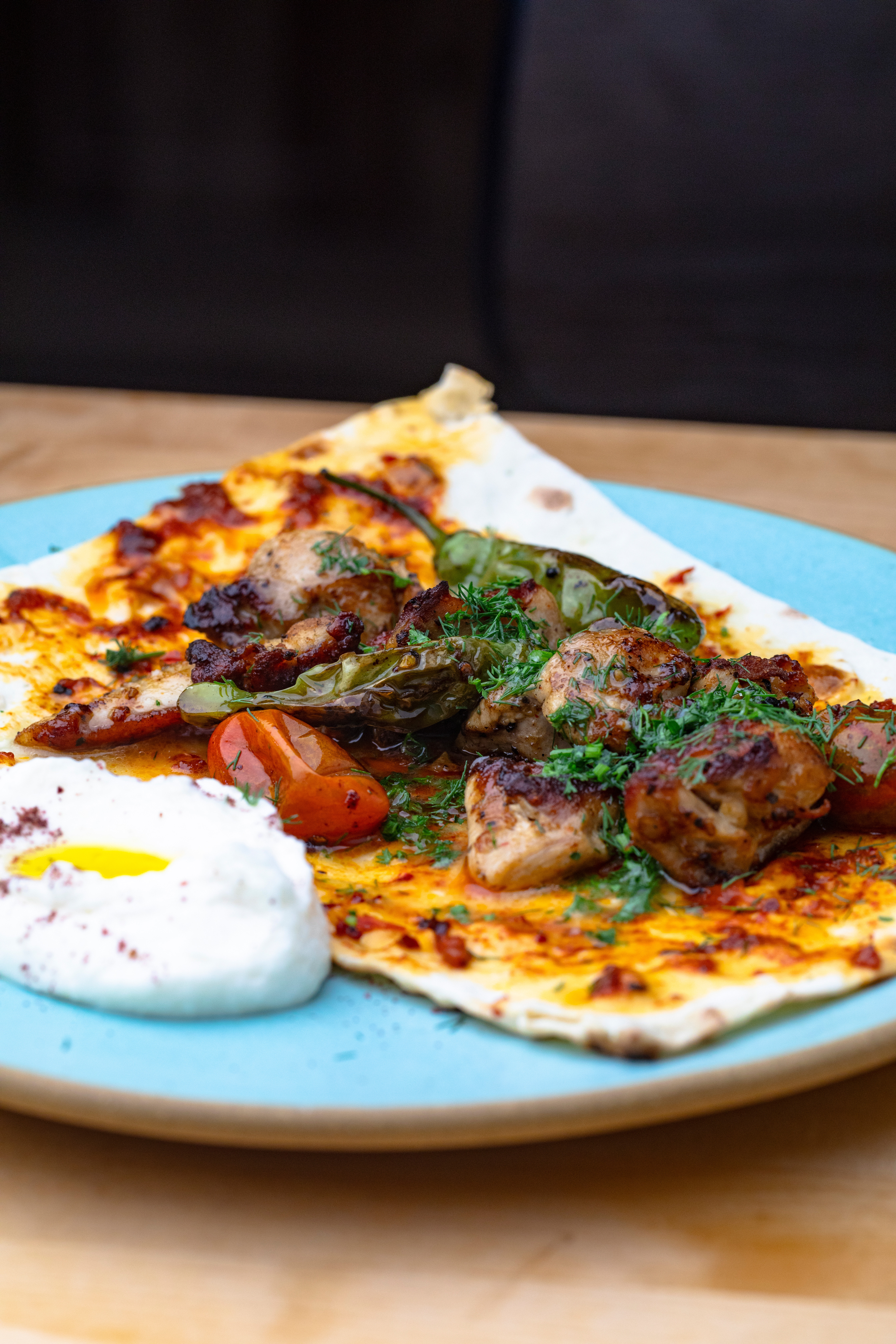 And although a dish like chicken kebab may seem simple, with Onoglu’s meticulous attention to detail and Turkish background, it strikes that perfect balance between homey yet elevated. Harissa and yogurt marinated chicken thighs are cooked to tender perfection, dotted with blistered peppers and candy-like cherry tomatoes, which blanket fresh grilled lavash. The serving of addictive toum (a garlic oil sauce) on the side takes it to a whole new level.
