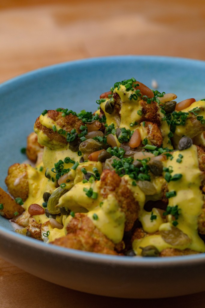 “I am blessed with the farmers’ market on Tuesday and Saturday right in front of me,” Onoglu said, noting a few of his go-tos. “Our cauliflower is always from Milliken, and our squash is always from Frecker Farms.”