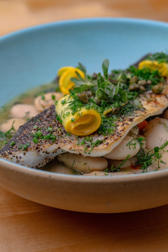 This penchant for acquiring the best was on full display with the luscious levrek. The succulent Mediterranean sea bass was a highlight of the night, bathing in a delightful broth of kale, gigante beans, ladolemono, cured baby marrows, sundried tomatoes, dill, and chives.