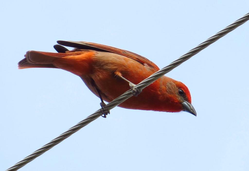 Santa Barbara has a good track record of attracting rarities that come here to winter, not unlike the rich and famous humans. Our coastal climate and abundance of winter food make survival relatively easy. In the 1980s, a Grace’s warbler, a species that normally winters in Mexico, returned to a row of pine trees in Montecito for nine consecutive winters. Another famous winterer was a male hepatic tanager; beginning in 1982, he returned to Rocky Nook Park for at least twelve winters. Another male hepatic tanager has just returned to Evergreen Park in Goleta for his third winter. It will be interesting to see whether he rivals the Rocky Nook bird for longevity.