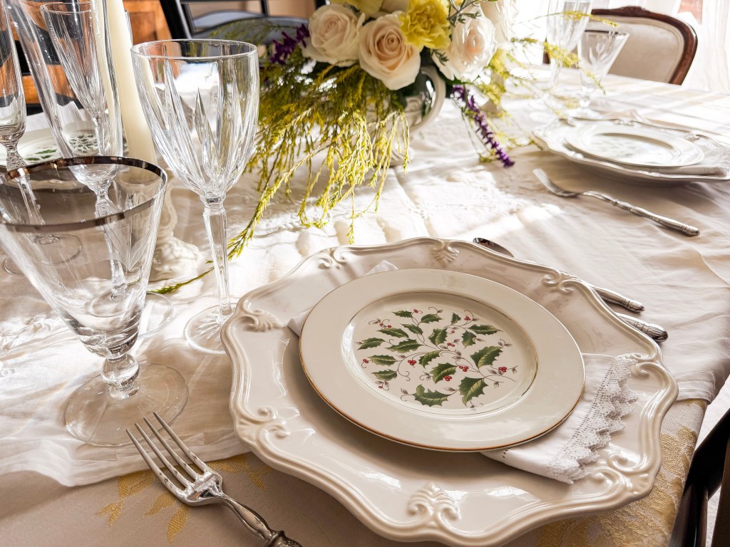 I have more tablecloths that I care to admit, and I use them! Remember that your tablecloth or runner sets the stage. Choose high-quality fabrics that complement your theme. Linen is a classic choice for its texture and relaxed elegance, while velvet adds winter richness and formality. If you have a beautiful wood table, consider leaving it exposed with a runner down the center to highlight its natural character.