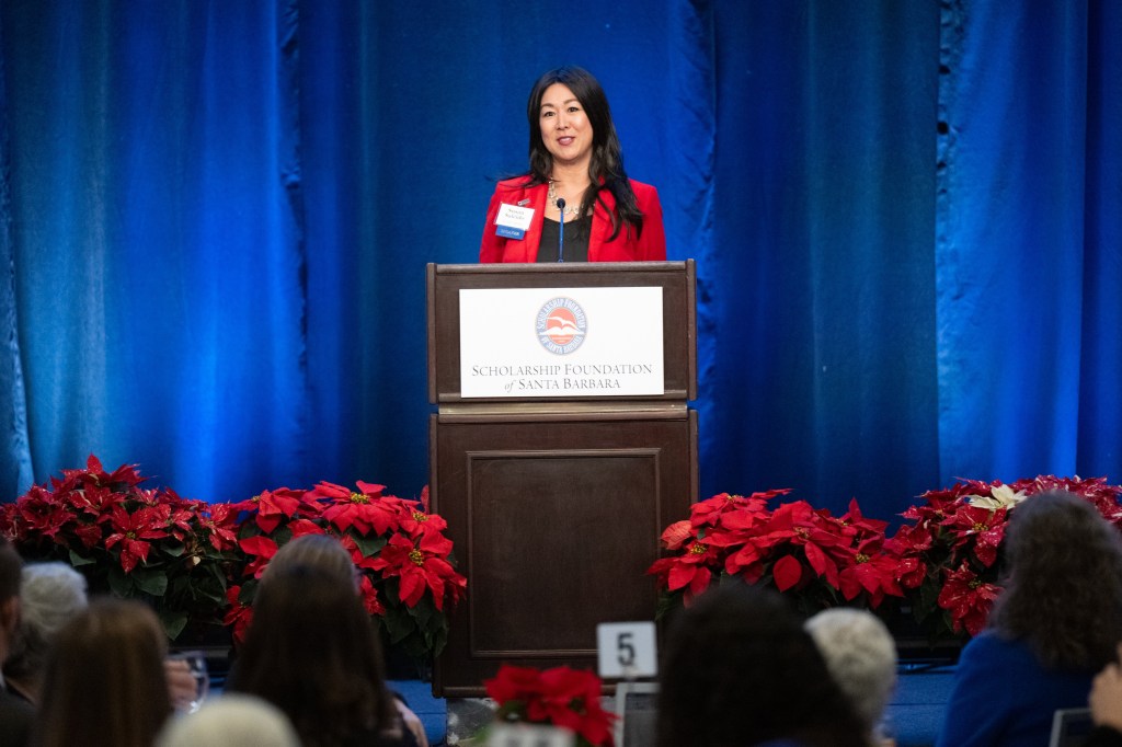 Featured speakers this year included Dr. Susan Salcido, Santa Barbara County superintendent of schools, and Dr. Casey Whipple, a family practice physician at Cottage Primary Care in Goleta and a former Scholarship Foundation recipient. Foundation Board Chair Pamela Gann also addressed attendees, as did Foundation President and CEO Melinda Cabrera. Patty MacFarlane, a former Scholarship Foundation Board president and a longtime community advocate, was the event’s honoree. The luncheon also featured a video tribute to former scholarship recipient Donna Weidl, who now serves on the Foundation Board and is a senior vice president at Merrill Lynch Wealth Management.
