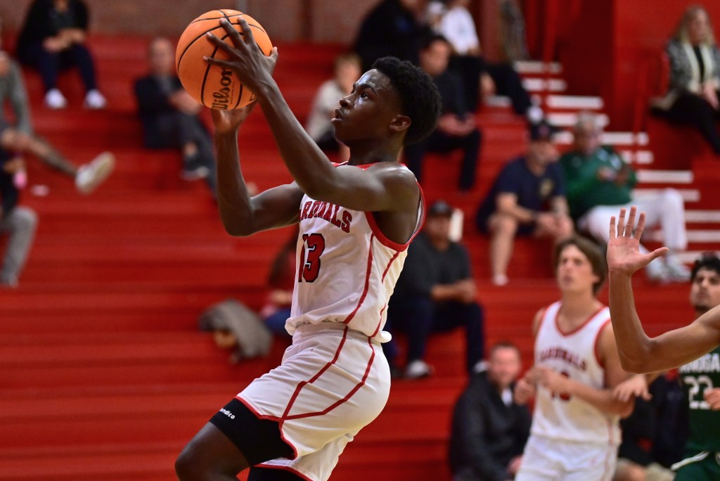 The game was tied at 6-6 early in the first quarter, but the Cardinals closed the period on a 12-1 run, capped by a corner three-pointer from standout sophomore Rudy Blue to break it open.