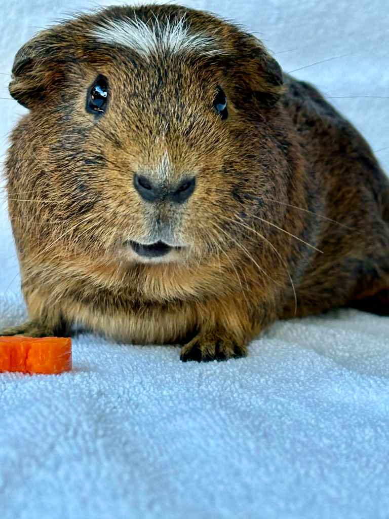 Guinea-pigs just don’t get much cuter than Charlie Brown, a young American breed male who sports a white crest that stands out against his glossy, brindle brown and black coat. He is sweet-tempered and loves to lounge in a lap. He was hoping this would be a “Charlie Brown Christmas” that would find him in his new furever home, but there is still time for him to have a home in the new year!