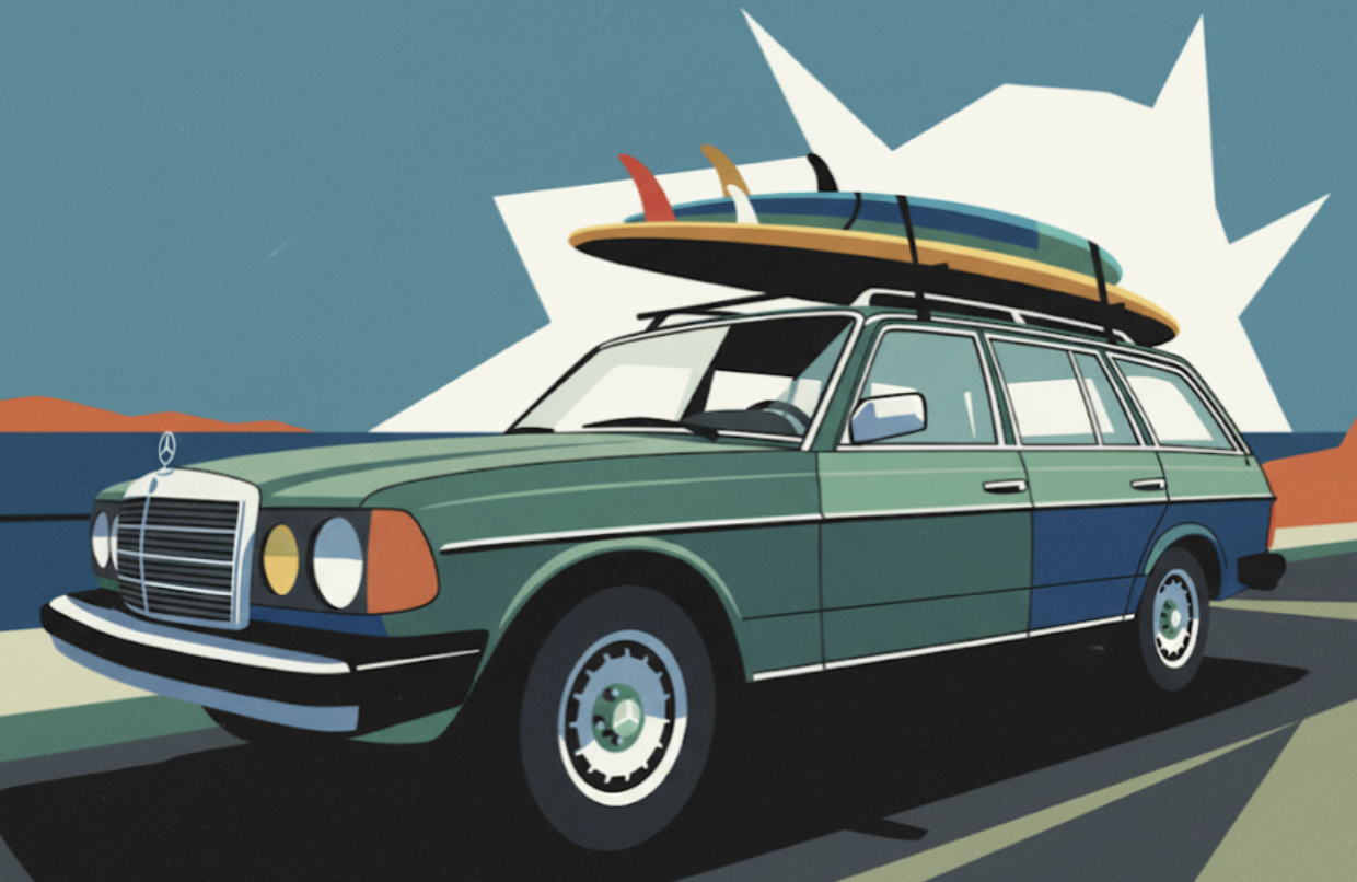 It wasn’t long before I upgraded to a green 1984 turbo Mercedes wagon. Now I could keep pace with most traffic. Even better, with the rear seats folded flat I could haul things! “The Green Machine,” as we came to call it, became part truck, part surf-mobile, and part dependable, if imperfect, friend.