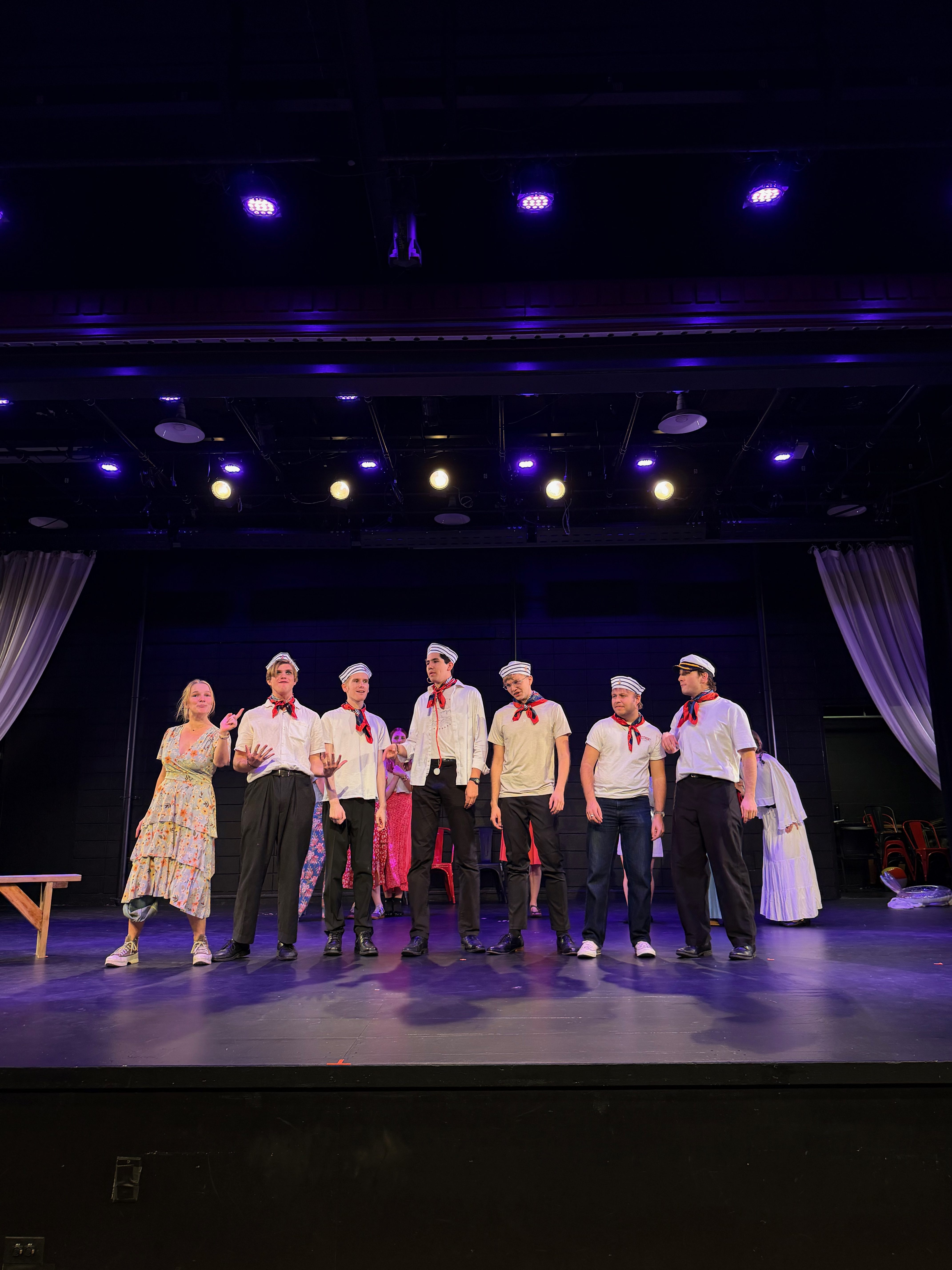 The Pirates of Penzance orchestra features 18-20 musicians on one side of the Porter Theater stage. While the original production was set in its time of writing (the Victorian era), Westmont’s production will be set aboard a cruise ship. “The stage itself is the deck of a 1930s luxury liner,” says Jensen. “We’ve also poured a lot of attention and detail into the costumes, making sure they’re bright and colorful.”