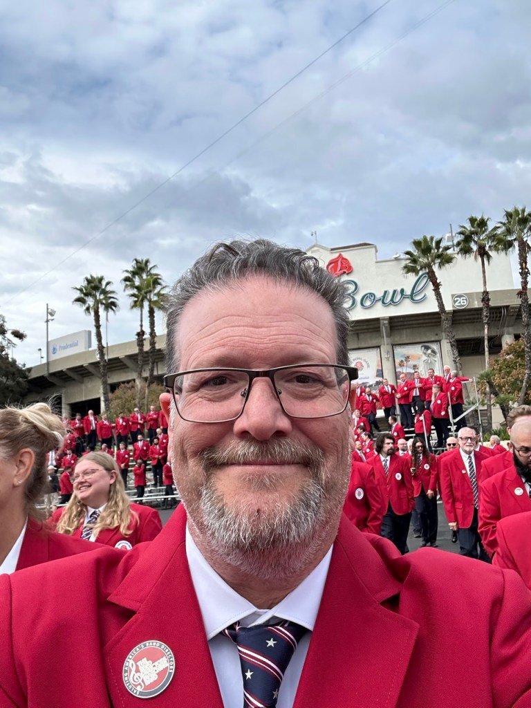 For Ortega, the parade was a full-circle moment. While it was his first time marching with the band directors’ ensemble, it was his second Rose Parade overall — the first coming 35 years ago as a 19-year-old member of the USC Trojan Marching Band.