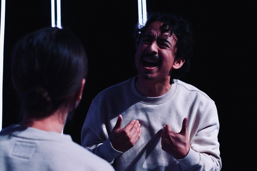 The set, designed by Robert Rodarte (who also directed the piece) is a minimalistic series of glowing frames that create levels of depth on stage. Coupled with rhythmic sounds that suggest the sterile, ritualistic nature of western medicine, this structure is an effective use of Center Stage’s black-box setup. The main hurdle of this production was the uneven distribution of emphasis between the A story and B story; also, the show is short enough to make an intermission undesirable for maintaining momentum.