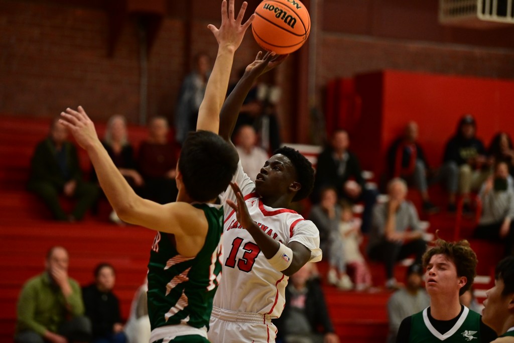 Crew Sjovold led the way for Bishop Diego with 19 points and spearheaded an inspired fourth quarter defensive effort as the Cardinals held Thacher to three points. Freshman Shane Kwizera chipped in 15 points.