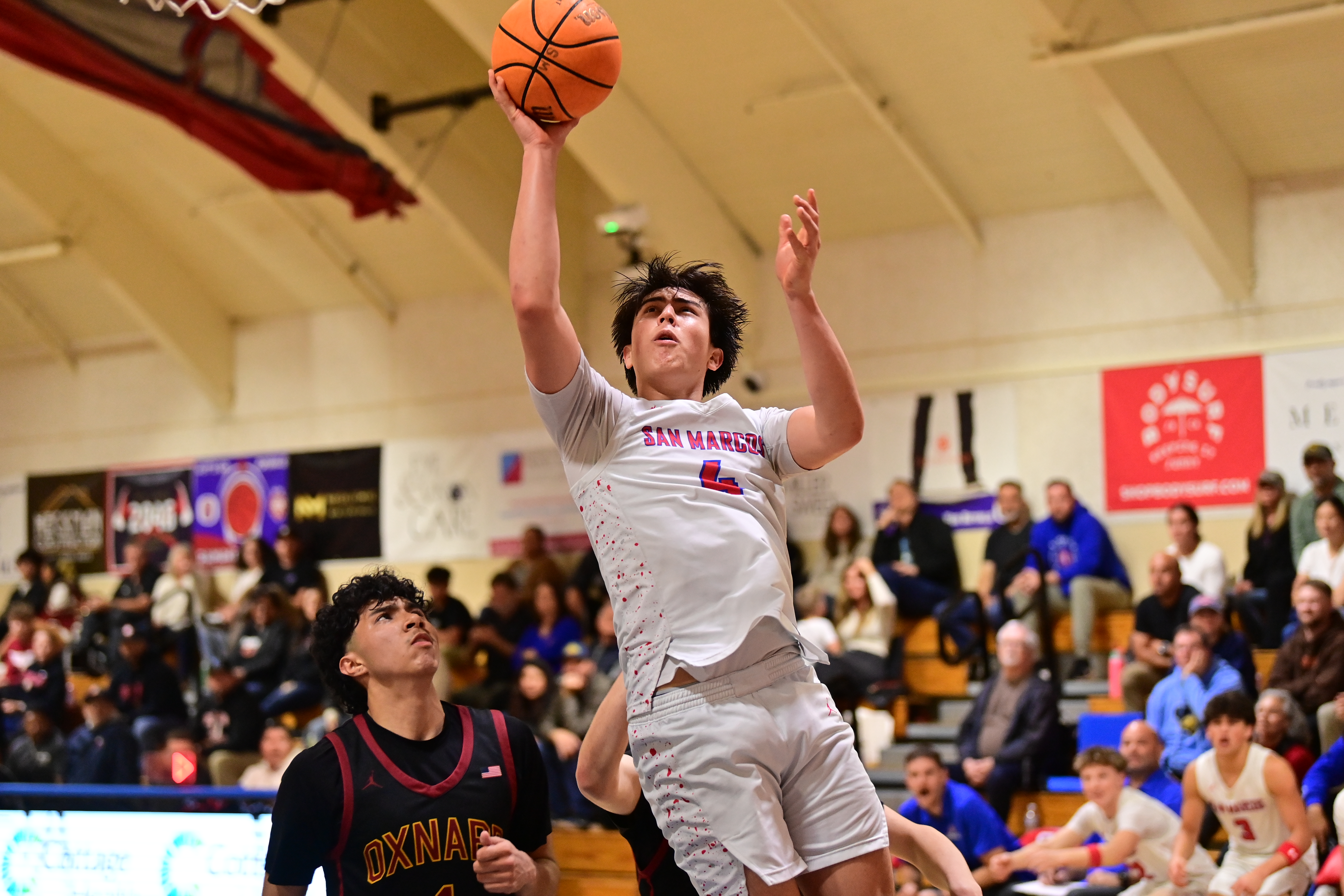 The San Marcos High boys’ basketball team survived a furious comeback by visiting Oxnard to claim a 43-41 victory in a crucial Channel League contest on Friday night.