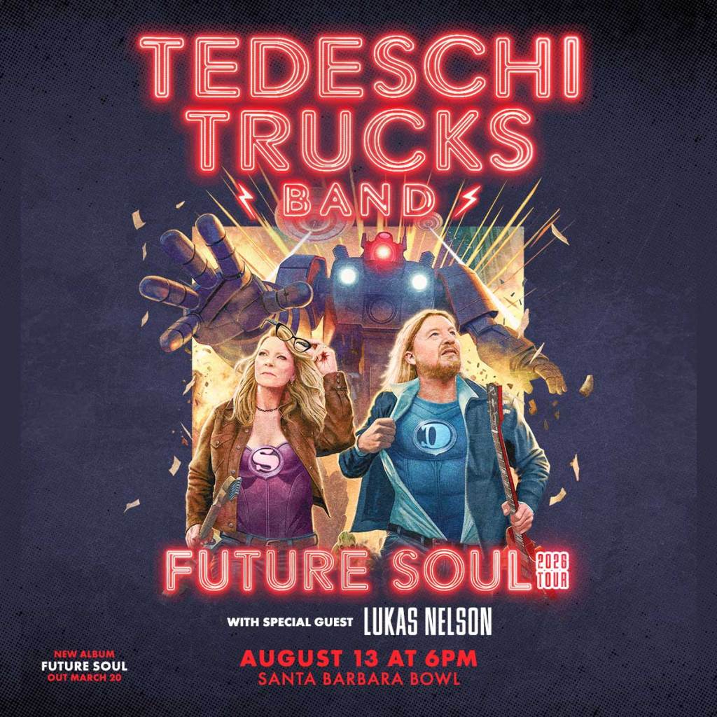 Tedeschi Trucks Band brings their Future Soul 2026 Tour to the Santa Barbara Bowl on Thursday, August 13, 2026, joined by special guest Lukas Nelson for an evening of soul-drenched rock, blues, and Americana. Gates open at 4:30 p.m., with the show beginning at 6 p.m. Tickets go on sale Friday, January 30, at 10 a.m.