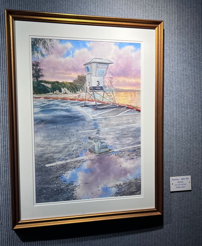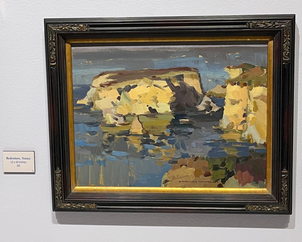Ray Hunter’s “Sunrise — After the Storm,” which captures the oily reflections on a muddy parking lot next to a lifeguard stand, is a stunningly unique point of view, and I was very drawn to the loose, slightly abstract style of Willis Heaton’s landscapes.